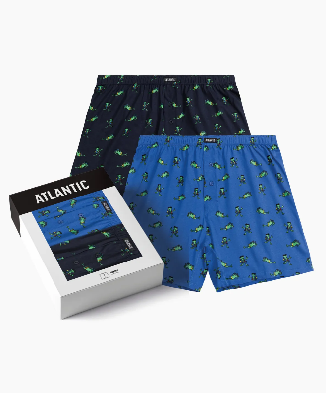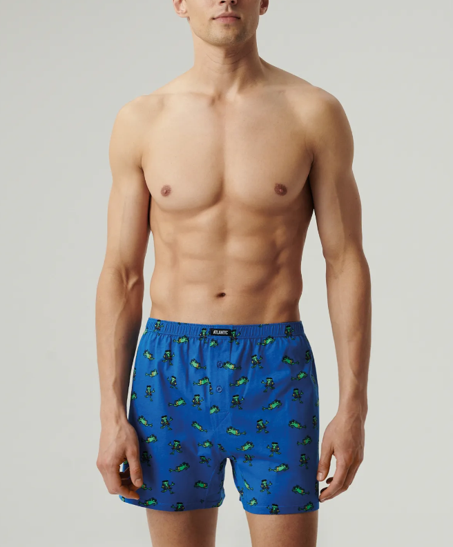 Набор из двух трусов разной расцветки с контрастным летним принтом в виде лягушек. Повседневная модель трусов с застежкой на пуговицах и внутренней резинкой. Идеально подойдут для носки на каждый день, а также в качестве подарка близким. Мужские трусы-боксеры 2MBH-006 от польского бренда Atlantic на каждый день: превосходно подойдут абсолютно любому мужчине как для повседневной носки, так и для занятий спортом. Классический свободный крой этой модели гарантирует идеальную посадку по фигуре, свободу движений и максимальный комфорт. Скрытая туннельная резинка не давит и не натирает при носке, а также обеспечивает контакт только с натуральным материалом. Свободные мужские боксеры имеют стандартную линию талии и штанины, доходящие до середины бедра, поэтому могут подойти к классическим брюкам или джинсам. В составе мужских семейных трусов используется мягкий, приятный на ощупь 100% хлопок. Трикотажное хлопковое полотно является прочным материалом, устойчивым к высоким температурам и растяжению, благодаря чему нижнее белье надолго сохраняет свой внешний вид и потребительские свойства. В упаковке представлено двое мужских боксерок в следующих расцветках: темно-синий и темно-голубой с ярким и игривым контрастным рисунком в виде лягушек. Вневременная классическая посадка нижнего белья, а также очаровательный принт, украшающий данную модель, делают этот набор мужских трусов особенным и идеальным подарком. Нижнее белье Атлантик будет самым превосходным подарком для мужчин всех возрастов: молодым парням и подросткам подойдут модели нижнего белья в яркой цветовой гамме и с паттерном или рисунком, более взрослым мужчинам - нижнее белье в сдержанных или строгих цветах, хотя иногда можно нарушить правила и поэкспериментировать