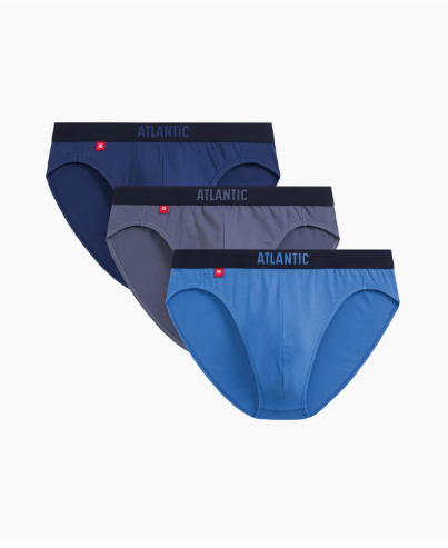Набор из 3 шт. мужских трусов-слипов Atlantic цвета темно-голубой, светло-голубой, индиго. Мужские классические однотонные трусы-слипы 3MP-094 от польского бренда Atlantic на каждый день: превосходно подойдут абсолютно любому мужчине как для повседневной носки, так и для активного занятия спортом (например, бега, фитнеса или физических нагрузок). Анатомически выверенный крой этой модели гарантирует идеальную посадку по фигуре и максимальный комфорт. Внешняя пришивная резинка не давит, не скручивается и не натирает при носке, а также, благодаря микрофибре в составе, обеспечивает приятные тактильные ощущения для кожи. Облегающие мужские трусы слипы имеют слегка заниженную линию талии и универсальную ширину по бокам, поэтому могут подойти к любому типу одежды. В составе используется мягкий, приятный на ощупь хлопок в сочетании с эластаном. Трикотажное хлопковое полотно является прочным материалом, устойчивым к высоким температурам и растяжению, благодаря чему нижнее белье надолго сохраняет свой внешний вид и потребительские свойства. В упаковке представлено трое трусов брифов в различных вариантах расцветок - от строгого классического до яркого молодежного, брендированная резинка из микрофибры может быть выполнена как в тон основной расцветке, так и быть контрастного цвета. Нижнее белье Атлантик будет превосходным подарком для мужчин всех возрастов: молодым парням и подросткам подойдут модели нижнего белья в яркой цветовой гамме и с паттерном или рисунком, более взрослым мужчинам - нижнее белье в сдержанных или строгих цветах, хотя иногда можно нарушить правила и поэкспериментировать.