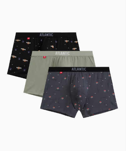 Набор из 3 шт. мужских трусов-шорт Atlantic черного светло-зеленого и графитового цвета. Мужские однотонные трусы-шорты 3MH-211 от польского бренда Atlantic на каждый день: превосходно подойдут абсолютно любому мужчине как для повседневной носки, так и для активного занятия спортом (например, бега, фитнеса, физических или силовых нагрузок). Анатомически выверенный спортивный крой этой модели гарантирует идеальную посадку по фигуре и максимальный комфорт. Внешняя пришивная резинка не давит, не скручивается и не натирает при носке. Облегающие мужские трусы шорты имеют среднюю линию талии, штанины стандартной длины и профилированный гульфик, поэтому могут подойти к любому типу одежды. В составе используется мягкий, приятный на ощупь хлопок в сочетании с эластаном. Трикотажное хлопковое полотно является прочным материалом, устойчивым к высоким температурам и растяжению, благодаря чему нижнее белье надолго сохраняет свой внешний вид и потребительские свойства. В упаковке представлено трое шорт в различных вариантах расцветок - две модели выполнены с контрастным тематическим принтом; одна модель исполнена в однотонной цветовой гамме. Брендированная резинка из микрофибры обеспечивает приятные тактильные ощущения для кожи. Нижнее белье Атлантик будет превосходным подарком для мужчин всех возрастов: молодым парням и подросткам подойдут модели нижнего белья в яркой цветовой гамме и с паттерном или рисунком, более взрослым мужчинам - нижнее белье в сдержанных или строгих цветах, хотя иногда можно нарушить правила и поэкспериментировать.
