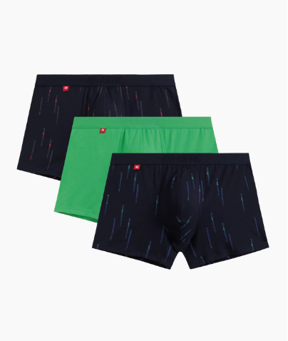 Набор из 3 шт. мужских трусов-шорт Atlantic темно-синего, зеленого и темно-синего цвета. Мужские однотонные трусы-шорты 3MH-210 от польского бренда Atlantic на каждый день: превосходно подойдут абсолютно любому мужчине как для повседневной носки, так и для активного занятия спортом (например, бега, фитнеса, физических или силовых нагрузок). Анатомически выверенный спортивный крой этой модели гарантирует идеальную посадку по фигуре и максимальный комфорт. Внешняя пришивная резинка не давит, не скручивается и не натирает при носке. Облегающие мужские трусы шорты имеют среднюю линию талии, штанины стандартной длины и профилированный гульфик, поэтому могут подойти к любому типу одежды. В составе используется мягкий, приятный на ощупь хлопок в сочетании с эластаном. Трикотажное хлопковое полотно является прочным материалом, устойчивым к высоким температурам и растяжению, благодаря чему нижнее белье надолго сохраняет свой внешний вид и потребительские свойства. Резинка из микрофибры и объемным названием бренда обеспечивает приятные тактильные ощущения для кожи. Нижнее белье Атлантик будет превосходным подарком для мужчин всех возрастов: молодым парням и подросткам подойдут модели нижнего белья в яркой цветовой гамме и с паттерном или рисунком, более взрослым мужчинам - нижнее белье в сдержанных или строгих цветах, хотя иногда можно нарушить правила и поэкспериментировать
