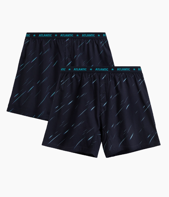 Набор из двух пар мужских трусов-боксеров Atlantic в классическом черном цвете, сочетает повседневный комфорт и функциональность. Модель 2MBX-085 от польского бренда Atlantic выполнена из 100% хлопка, который обеспечивает мягкость и долговечность благодаря устойчивости к растяжению и высоким температурам. Свободный крой с длиной штанин до середины бедра и стандартной линией талии гарантирует удобную посадку и подходит для носки с любым типом одежды — от джинсов до классических брюк.