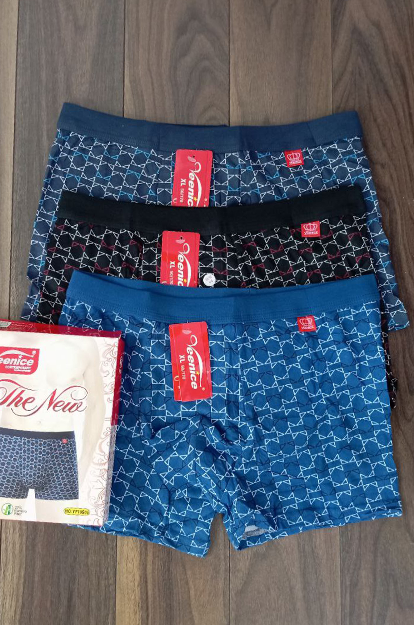 Мужские боксеры с мелким рисунком из мягкой эластичной хлопковой ткани с добавлением бамбуковой нити, пояс на широкой спортивной резинке. Производство Китай.