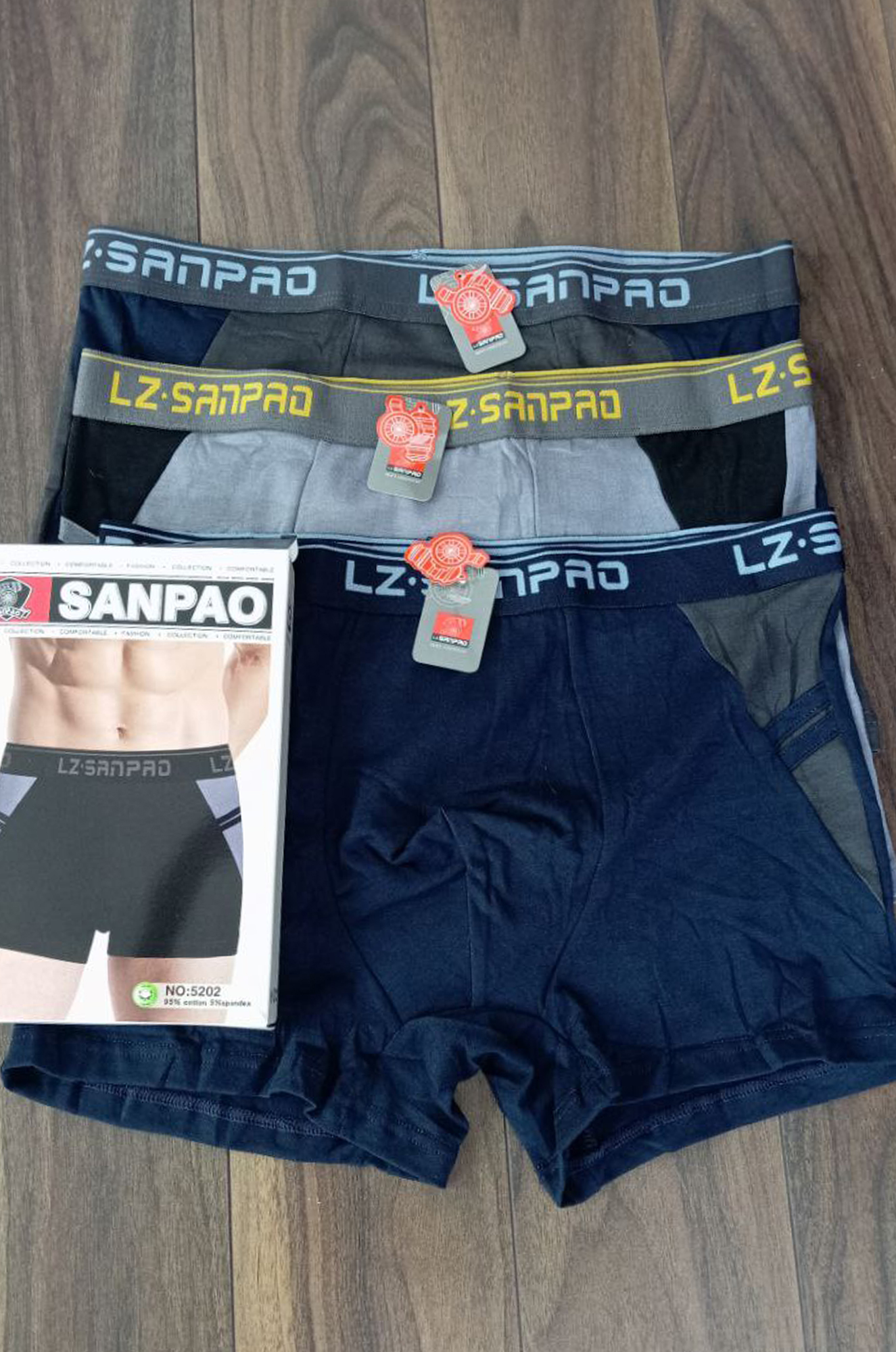 Однотонные мужские боксеры с лампасами, пояс на широкой резинке c надписью. Ткань мягкий, эластичный хлопок с добавлением пэ нити.  Производство Китай.