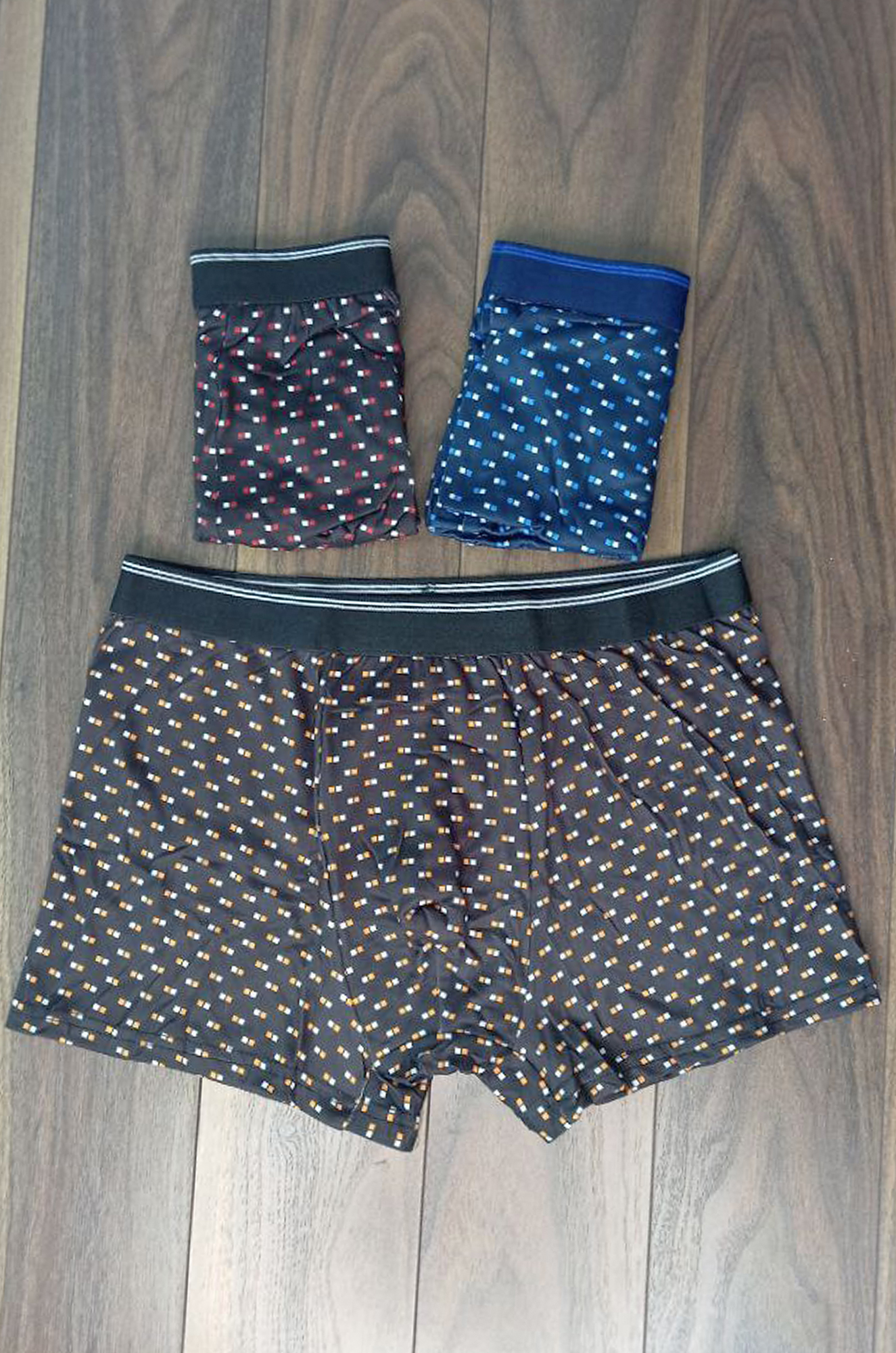 Мужские боксеры с мелким рисунком из мягкой эластичной хлопковой ткани с добавлением ПЭ, пояс на комфортной широкой пришивной резинке. Производство Китай.