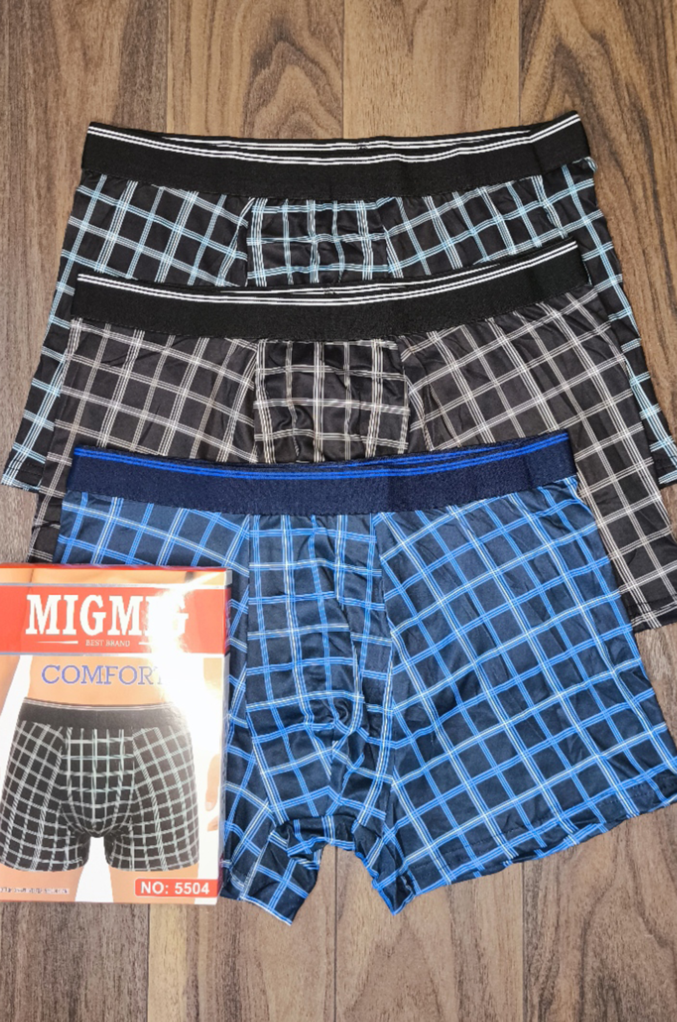 Мужские боксеры с рисунком "клетка" из мягкой эластичной хлопковой ткани с добавлением ПЭ, пояс на комфортной пришивной резинке. Производство Китай.