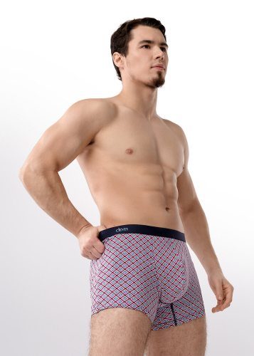 Шорты укороченные комфортной посадки выполнены из оригинального полотна в авторскую полосу. Трусы дополнены жаккардовой имиджевой резинкой.