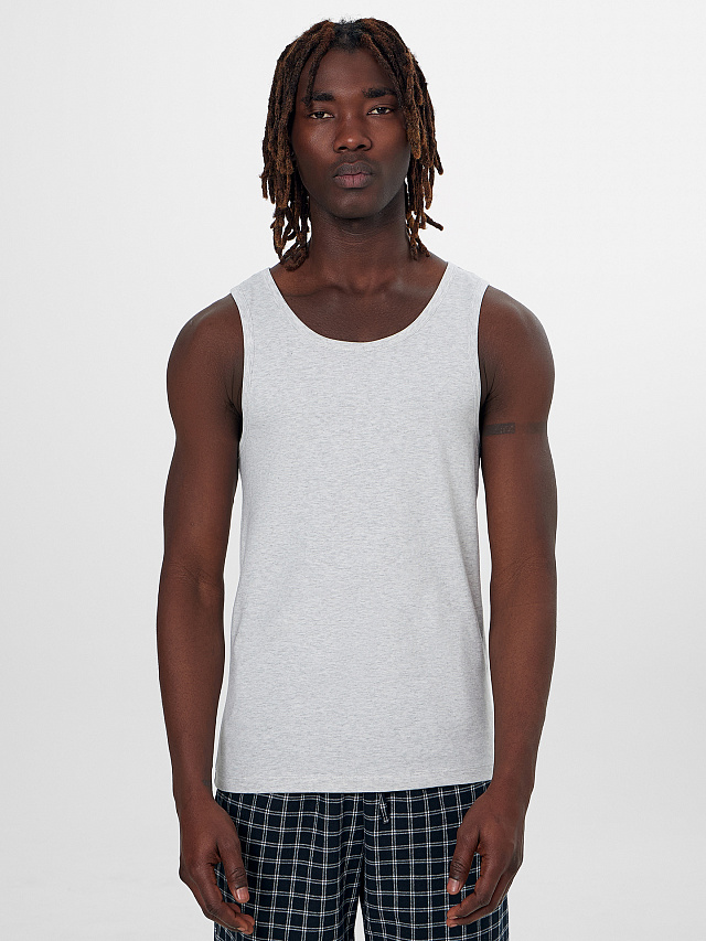 Серая мужская нательная майка — это базовый комфорт для повседневной носки. Модель выполнена из мягкой кулирки, которая нежно прилегает к телу, позволяет коже дышать и не теряет форму после стирок.