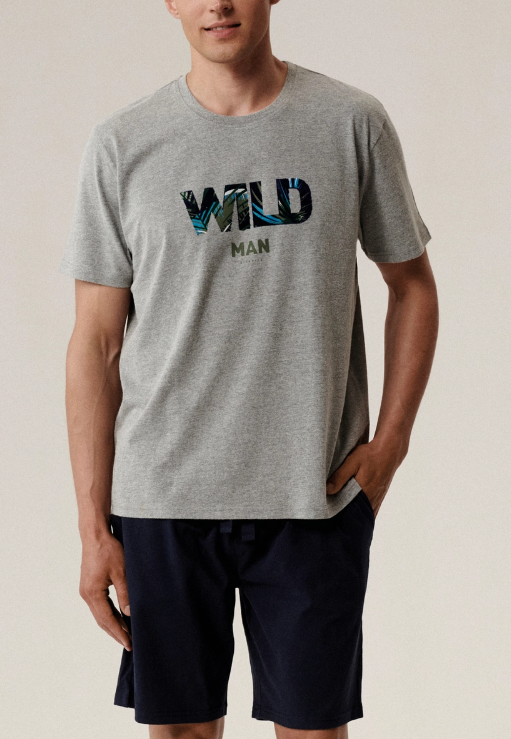 Мужская пижама Atlantic цвета серый меланж и тёмно-синего из коллекции Homewear — это практичный комплект для комфортного отдыха и повседневной носки. Коллекция Homewear польского бренда Atlantic - это мужская одежда для домашнего отдыха и сна, которая представлена как готовыми пижамными комплектами (мужские пижамы с брюками и лонгсливом с длинным рукавом, со штанами и футболкой с коротким рукавом, с шортами и футболкой), так и отдельными предметами одежды для дома, которые можно сочетать между собой на свой вкус (пижамные брюки, шорты и футболки самых разных фасонов и расцветок). Набор NMP-396- это стильная мужская пижама, состоящая из футболки с круглым вырезом горловины и однотонных шорт классического свободного кроя. Пояс шорт на резинке, объем талии регулируется с помощью завязок. Футболка дополнена брендированной надписью на груди. Мягкий хлопок в составе данной модели мужских пижам очень приятен к телу, позволяет коже дышать и обработан по технологии "Peach Effect" для создания мягкой бархатистой поверхности. Идеально подходит для повседневной носки, а также в качестве подарка друзьям и близким. Универсальный дизайн позволяет сочетать предметы пижамы как между собой, так и с другой повседневной одеждой — джинсами, летними рубашками или майками. Специально обработанное хлопковое полотно отличается повышенной прочностью и долговечностью, сохраняя форму и цвет после множества стирок, а его дышащие свойства обеспечивают комфорт в течение всего дня. Пижама Atlantic станет отличным подарком для мужчин любого возраста.