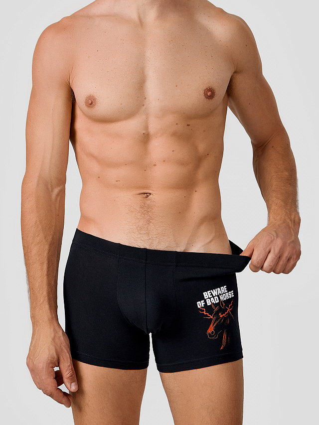 Мужские трусы боксеры - это практичная модель для повседневной носки. Надпись «Beware of bad horse» ("Остерегайтесь плохой лошади") добавляет образу харизмы и индивидуальности. Выполнены из мягкой кулирки, которая обеспечивает идеальную воздухопроницаемость, мягкость и долговечность. Натуральный хлопок бережно заботится о коже, предотвращая раздражения, а эластан добавляет эластичность, сохраняя форму даже после множества стирок.