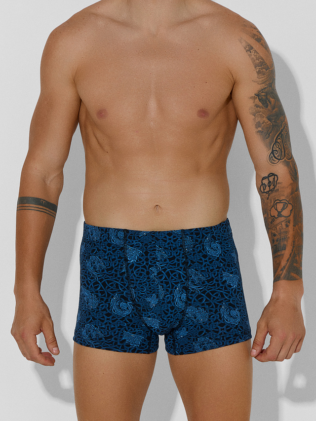 Трусы боксеры мужские черные с узором