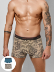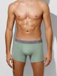 Мужские трусы-боксеры обеспечивают максимальный комфорт и удобную посадку благодаря продуманному дизайну. Облегающий крой без боковых швов дарит свободу движений, исключая лишнее трение и создавая ощущение легкости в течение дня. Модель выполнена из трикотажной кулирки — мягкого, эластичного и воздухопроницаемого материала, который приятно прилегает к коже и сохраняет форму даже после многократных стирок. Верхний срез дополнен фирменной жаккардовой эластичной тесьмой с логотипом бренда, придающей стильный акцент и надежно фиксирующей изделие. Нижние срезы аккуратно обработаны швом вподгибку, что гарантирует долговечность и эстетичный вид. Эти боксеры — идеальный выбор для тех, кто ценит сочетание качества, удобства и современного дизайна в нижнем белье. Отличный вариант для ежедневной носки, который гармонично объединяет практичность и стиль.