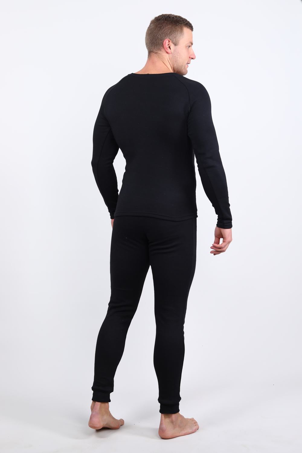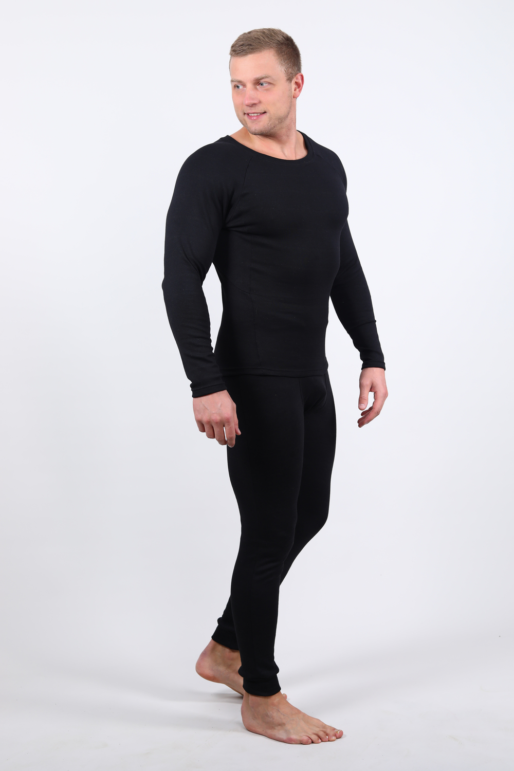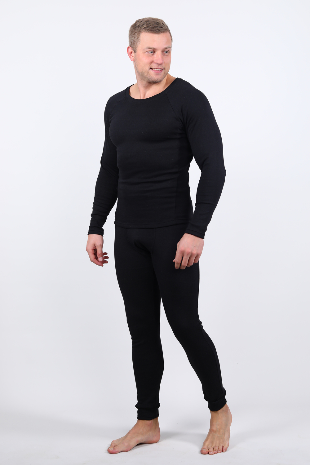 Термокомплект мужской, отличный вариант для защиты от низких температур. Комплект состоит из кальсон и лонгслива, выполнен из трикотажного полотна рибана с начесом. Легкий начес улучшит терморегуляцию тела и сохранит тепло. Лонгслив и кальсоны можно использовать как самостоятельные изделия. Цвет: черный;серый меланж; Материал: рибана с начесом;рибана с начесом; Состав: 65% хлопок, 32% полиэстер, 3% лайкра.