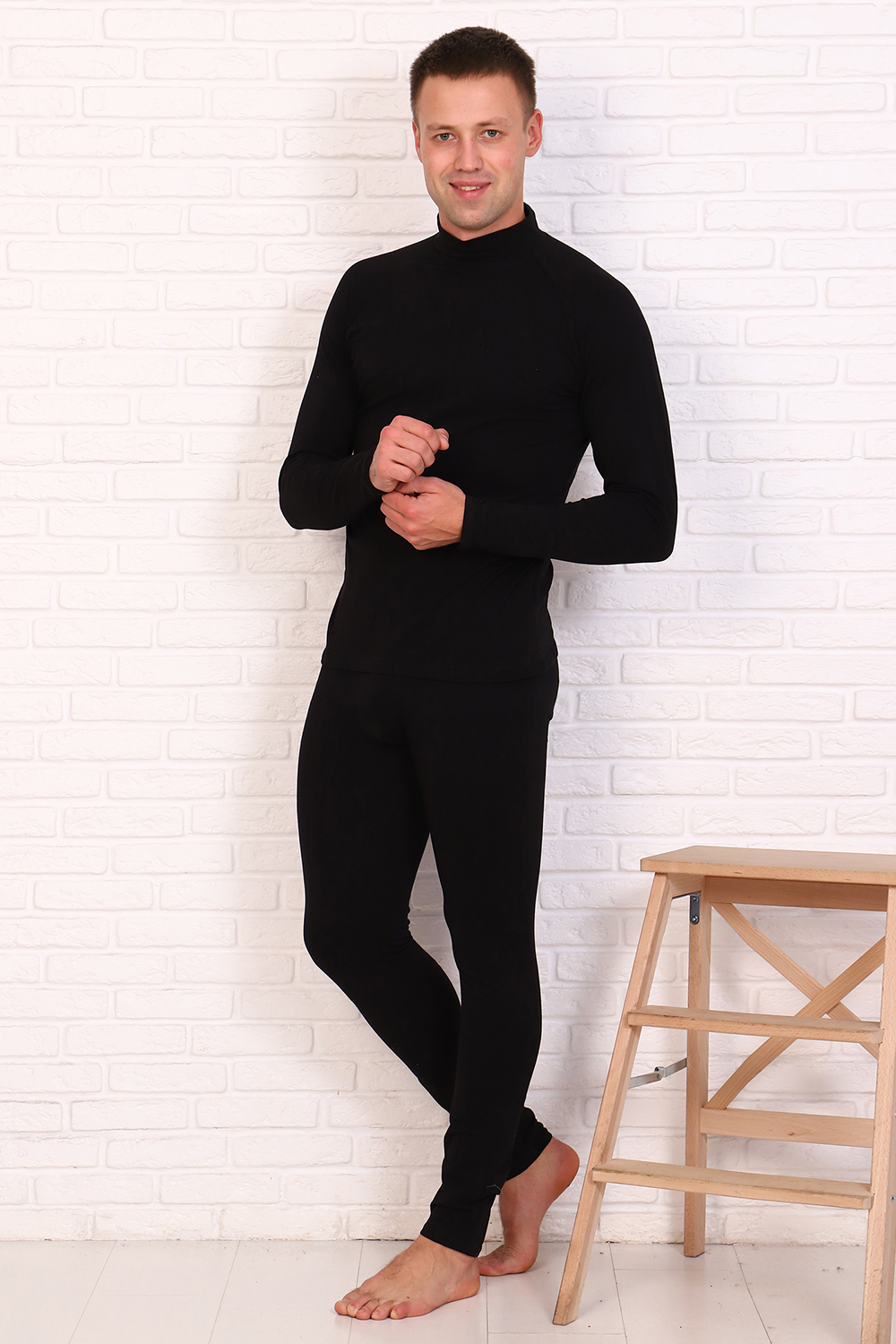 Комплект мужского нательного термобелья. Хорошо облегает тело, отводит влагу, сохраняет температурный баланс тела в прохладную погоду, абсолютно незаметно под верхней одеждой. Подходит для повседневной носки и активного отдыха. Рост до 176 см Цвет: черный; Материал: кулирка с лайкрой;кулирка с лайкрой; Состав: 95% хлопок, 5% эластан.
