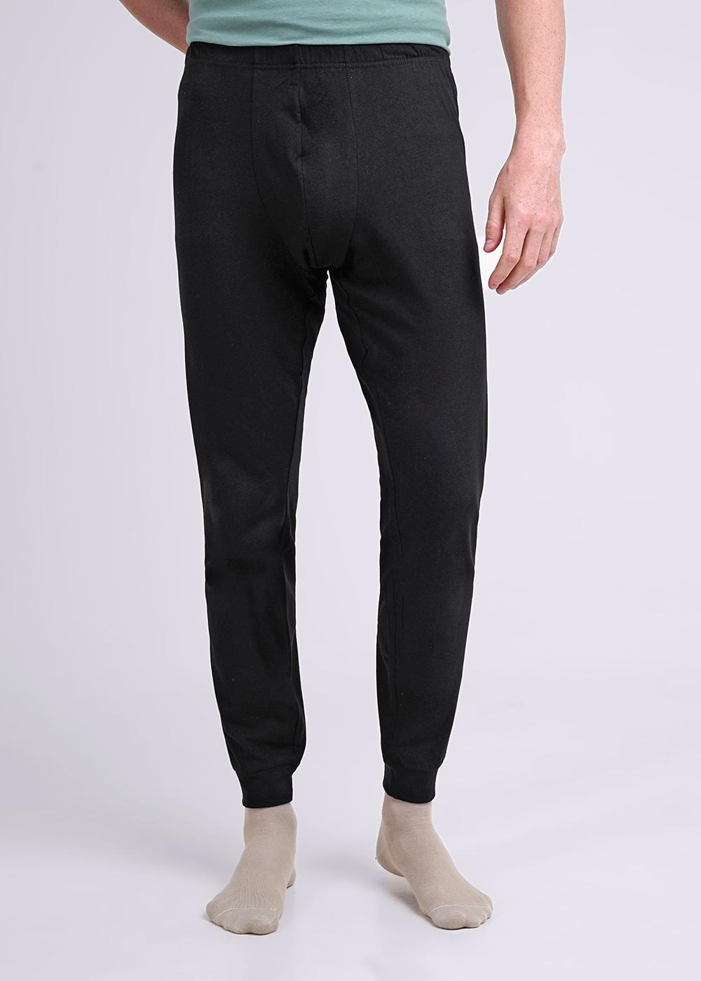 Мужские хлопковые кальсоны свободной посадки с нефункциональным гульфиком, на внутренней резинке и манжетами по низу.