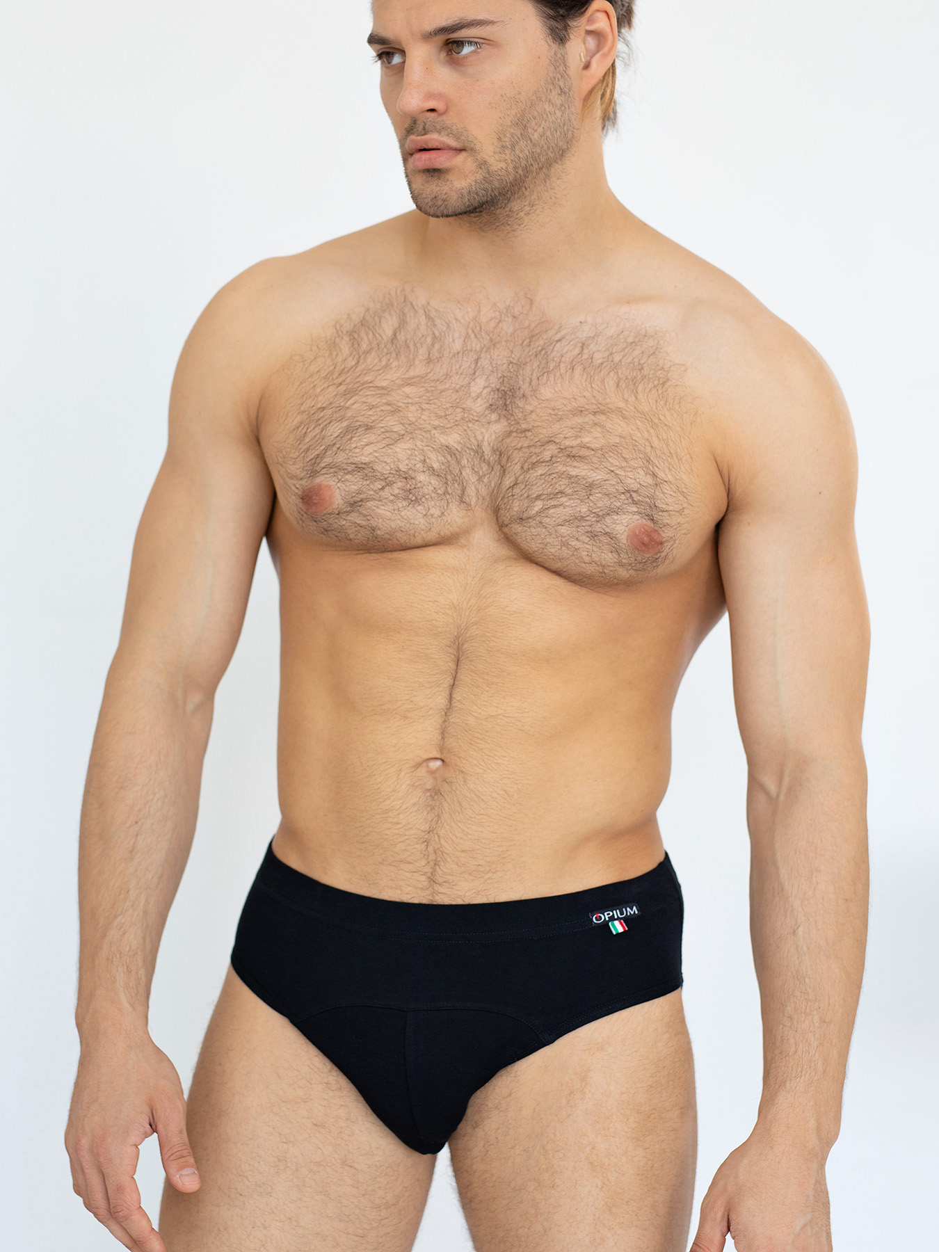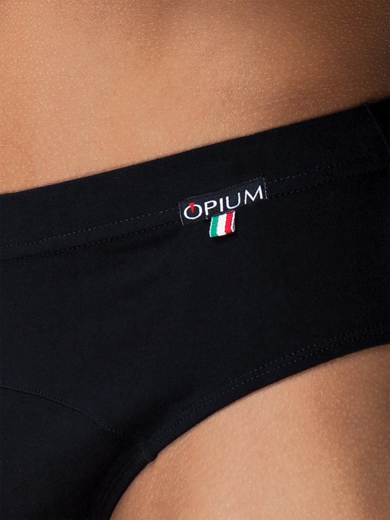 Классические трусы слип с мягкой вшитой резинкой и шевроном в виде логотипа Opium и итальянского флага.