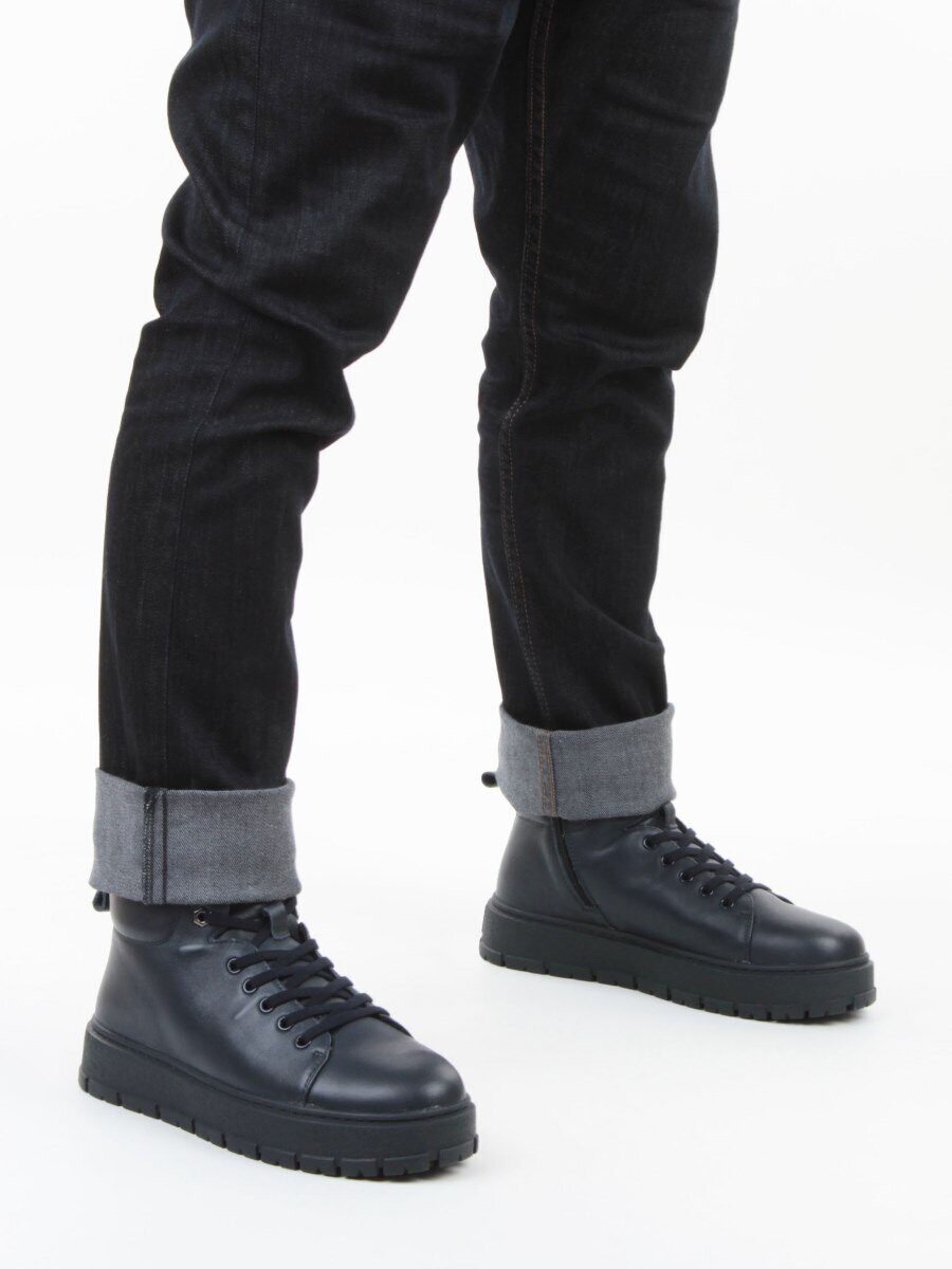 05-AW1010-2M DK. BLUE Ботинки зимние мужские (натуральная кожа, натуральный мех)