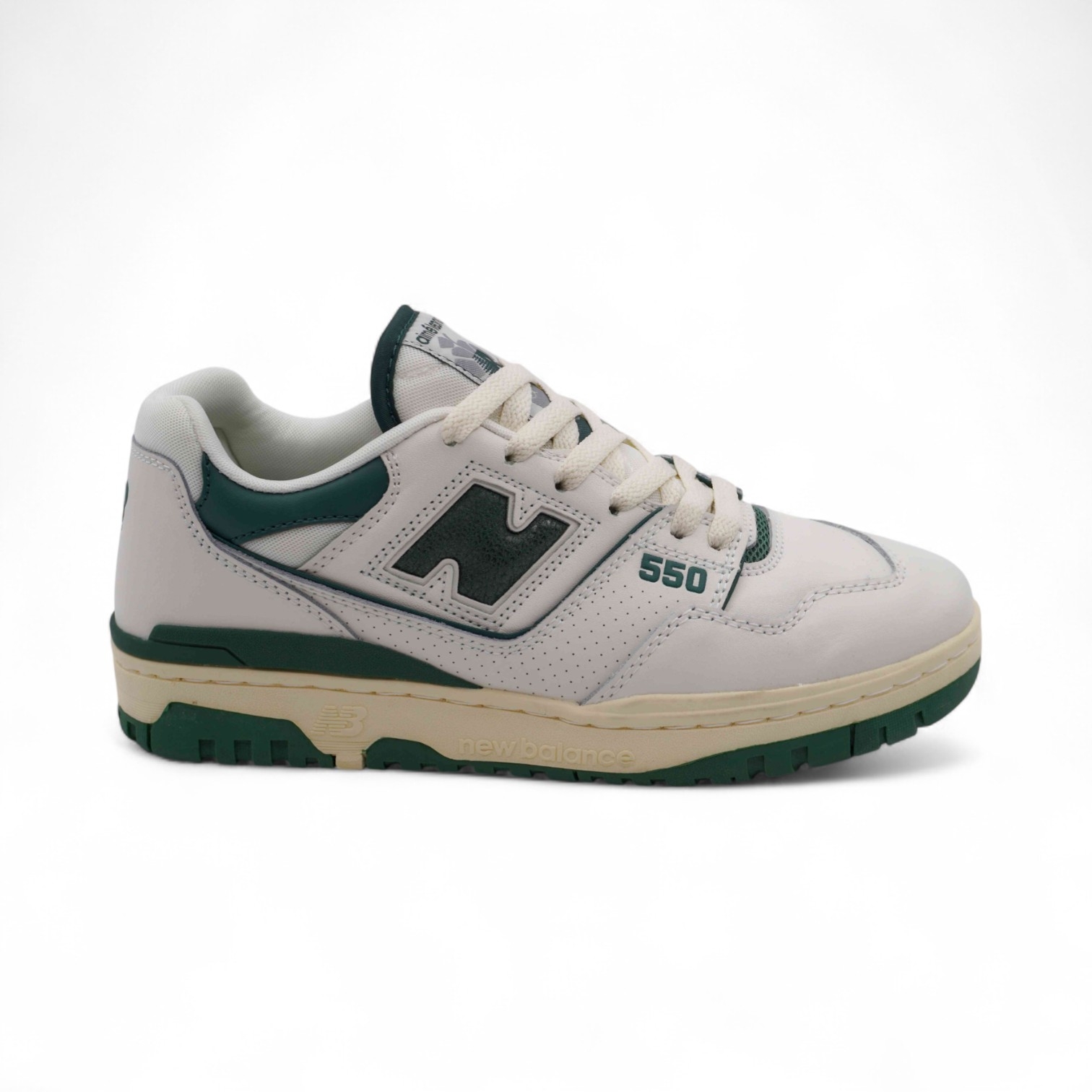 Кроссовки из натуральной кожи ВВ550 бело зеленые п/п