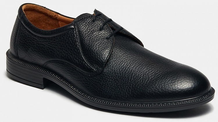 Черные мужские туфли ROGER-3 с легкостью впишутся в ваш деловой гардероб. Материал верха - мягкая крупноячеистой кожа. Литьевой способ крепления подошвы обеспечивает повышенную прочность, а удобная шнуровка и легкая конструкция добавят комфорта. Модель отличается увеличенной полнотой, учитывайте это при выборе обуви. Туфли легко сочетаются с классическим костюмом и джинсами.-Кожа, Текстиль-10 (На широкую ногу)