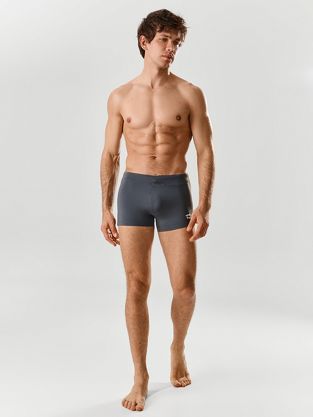 Трусы купальные мужские (боксеры) из трикотажного полотна для купальных изделий Силуэт прилегающий. Передние и задние детали со средним швом. Перед с подкладкой. Пояс отрезной из основного полотна, с эластичной тесьмой внутри.Во внутреннюю часть пояса вставлен шнур.