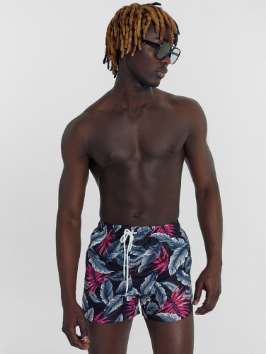 Шорты мужские спортивные черные с принтом "тропики"