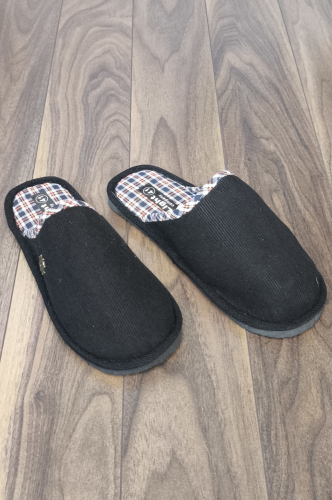 Удобные домашние мужские тапки-шлёпки из текстиля. Модель с закрытым носом, подошва ЭВА пористая, гибкая и лёгкая,  верх - ткань "шотландка". Расцветки в ассортименте.