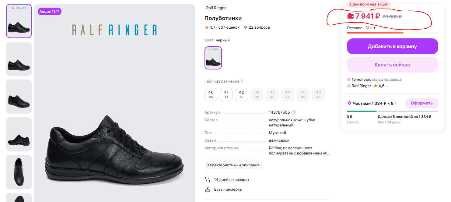 21.11.24 Нижегородская обл. Обувь Ralf Ringer. Уценка от 1100р !!- сбор 103