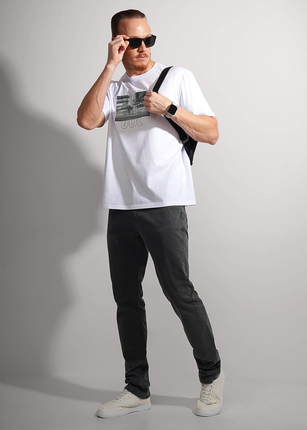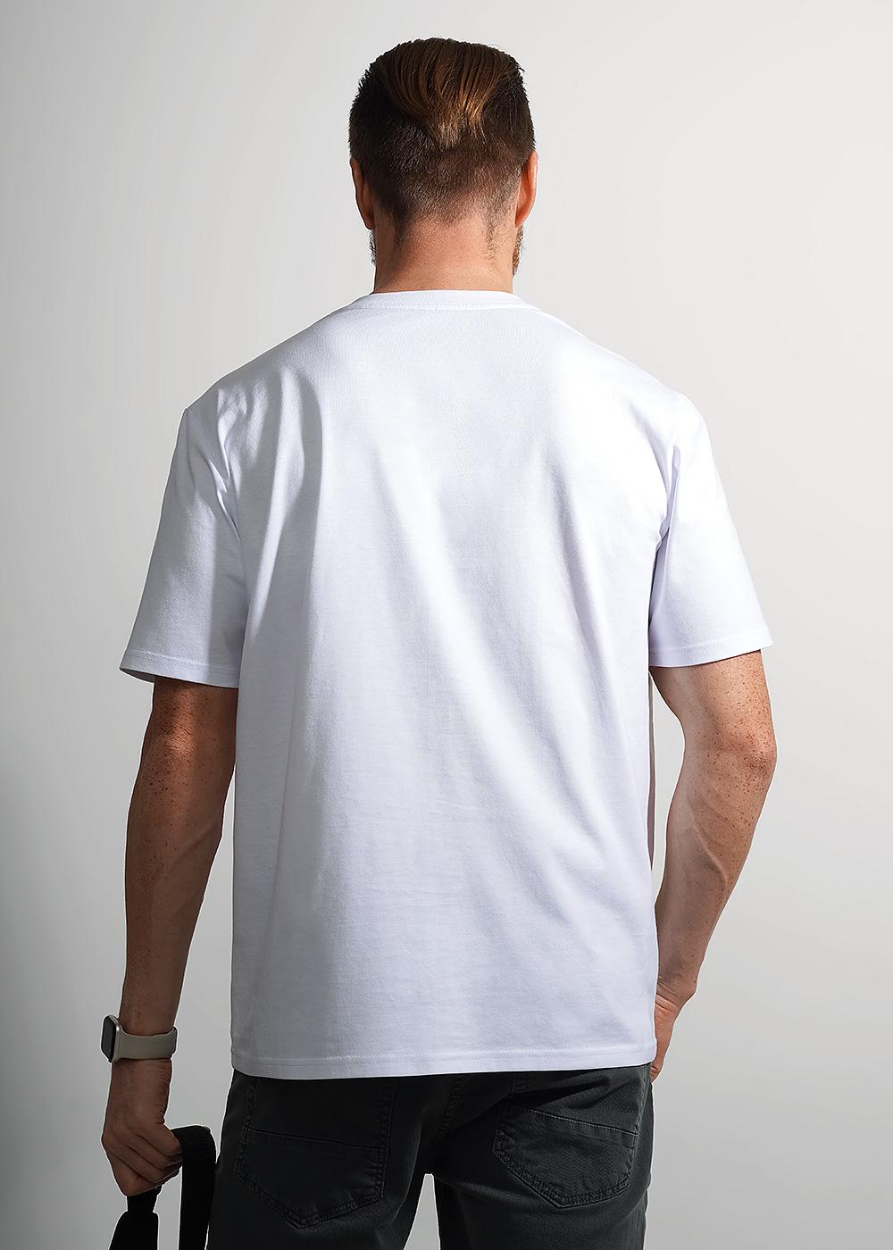 "Описание: Стильная мужская футболка oversize из хлопкового полотна. Изделие со спущенной линией плеча, удлиненным рукавом, дополнено графичным принтом спереди. Отлично подходит для прогулок и встреч с друзьями.