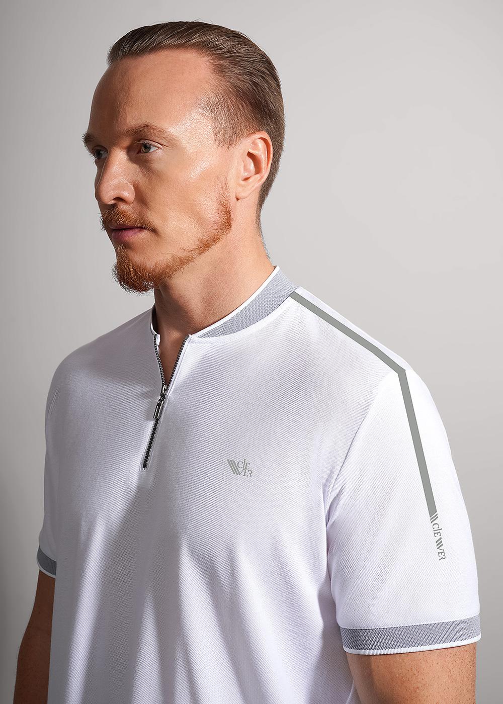 "Описание: Футболка поло из фактурного полотна пике с вязаными манжетами и воротником. Функциональная планка. Модель дополнена вышивкой и принтом. Отличное решение для встреч с друзьями.