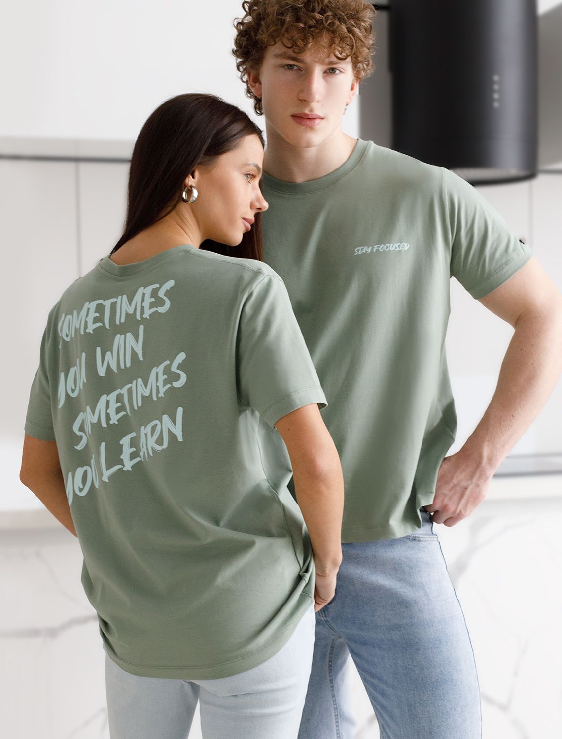 Перевод: Перед "Не теряй фокус" спинка "Иногда ты побеждаешь, иногда - учишься" надпись выполнена пуффом и красками с устойчивым покрытием. Футболка выполнена из премиального хлопка. Особым преимуществом является наличие эластана в составе изделия. Очень приятная на ощупь и комфортная при носке, футболка сохранит свой безупречный внешний вид в течении долгого времени. Модель дополнена нашивкой из эко-кожи с логотипом VILATTE.