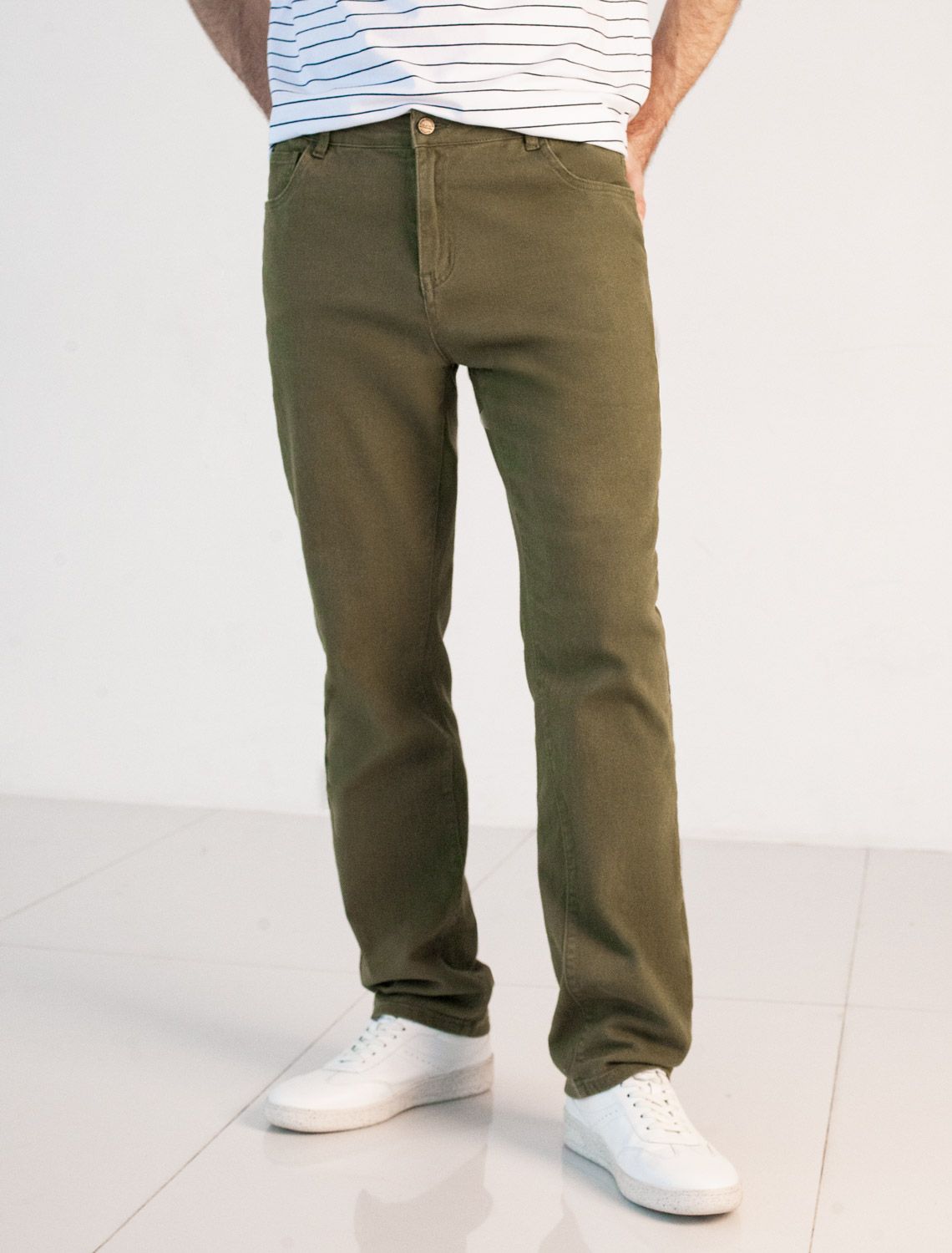 Состав: 100%Хлопок Параметры моде..показатьли на первом фото: Рост 190, бюст 108, талия 87, бедра 104Темно-оливковые брюки, слегка зауженные к низу, выполнили из 100% хлопкового денима. Изделие комфортно садится по фигуре, обеспечивая свободу движений. Легко сочетается со всеми цветами одежды. Модель дополнили высококачественной фурнитурой бренда.ли на первом фото: Рост 190, бюст 108, талия 87, бедра 104