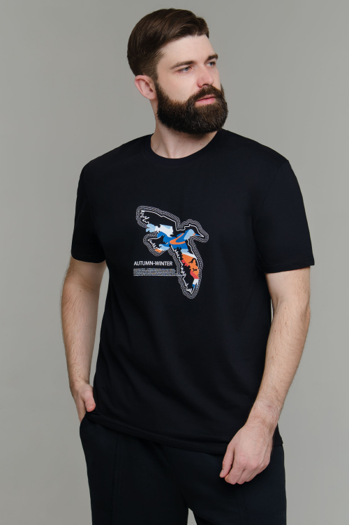 Футболка мужская повседневная выполнена из 100% хлопка, плотностью 150 г.