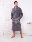 Халат велюр мужской махровый , цвет: 910-Серый, р-р 42(Акция)