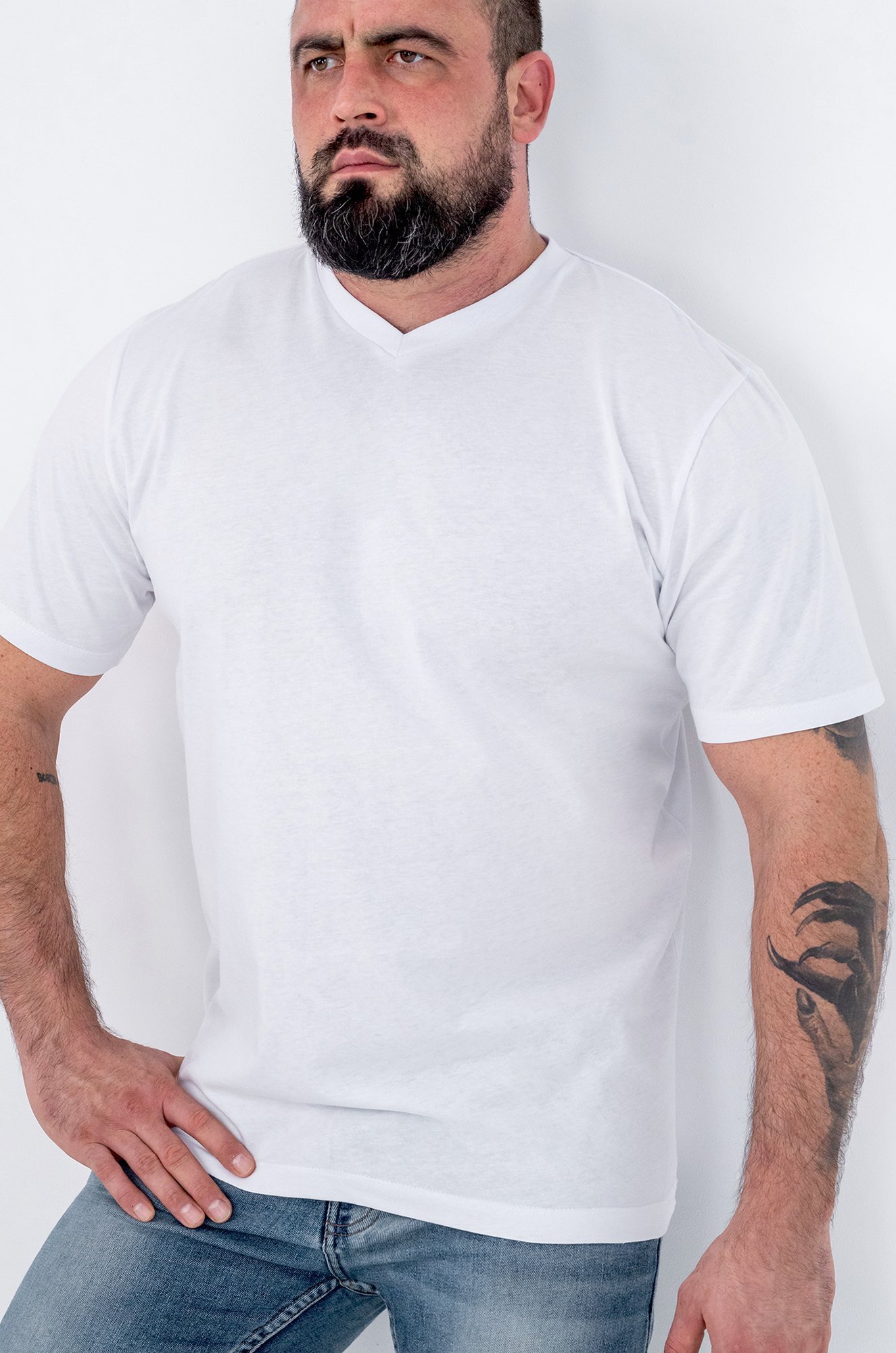 Мужская футболка больших размеров c V-вырезом Happyfox