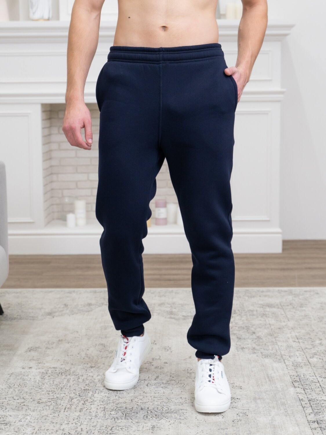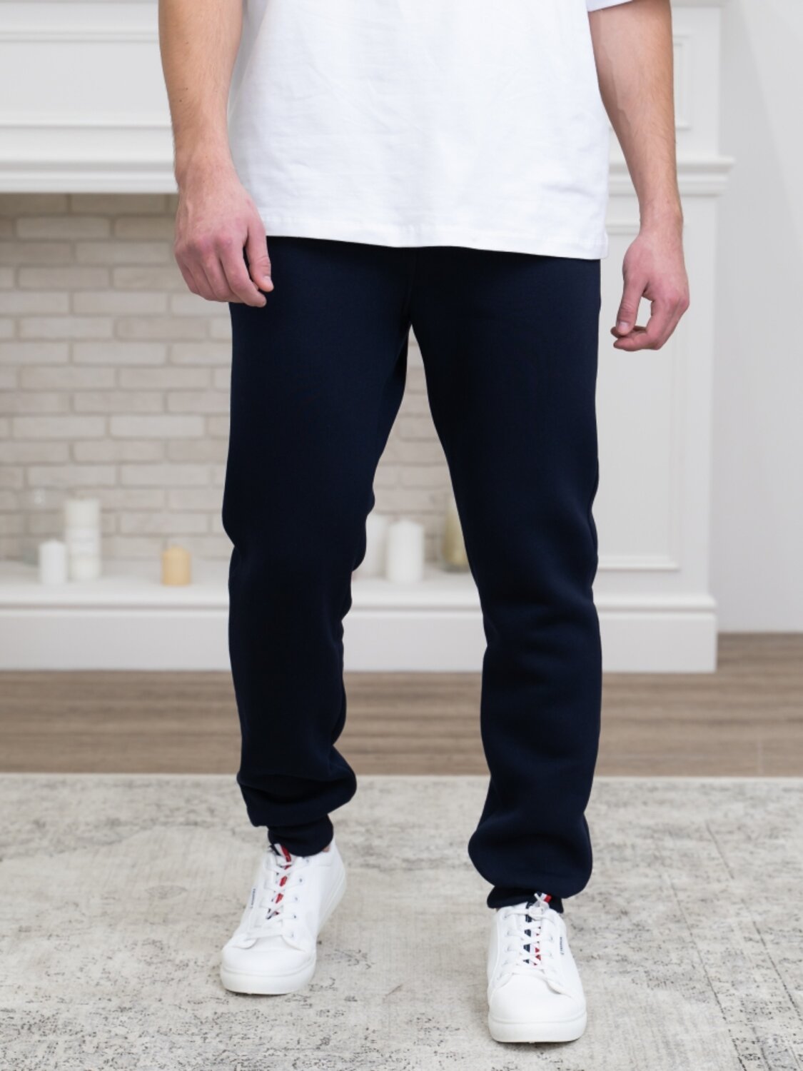 Трикотажные мужские брюки прямого кроя. Цельнокроеный пояс собран эластичной тесьмой. Внутренние карманы с отрезным бочком. Манжетная резинка внизу штанин. У этих прямых спортивных брюк предельно простой крой, который обеспечивает свободу движений и подходит для спорта, путешествий, отдыха на природе. Комфорт в носке дает мягкий материал с легким начесом с изнаночной стороны, а также эластичный пояс с широкой тесьмой для регулирования объема в талии. Фаворит зимнего сезона - турецкий футер на хлопчатобумажной основе с добавлением полиэстера обладает хорошей воздухопроницаемостью, гигроскопичностью способен в холод согревать тело. Трикотаж с высокой плотностью плетения позволяет не беспокоиться из-за вытянутых коленок или возможных складок, даже если необходимо сложить брюки в сумку или в рюкзак. Спортивная модель, хорошо комбинируется с толстовкой и кроссовками.