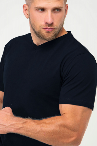 Однотонная мужская футболка с V-вырезом выполнена из нежного 100% хлопка – трикотажной ткани кулирная гладь. Дышащая мягкая ткань делает футболку идеальной для летней погоды.