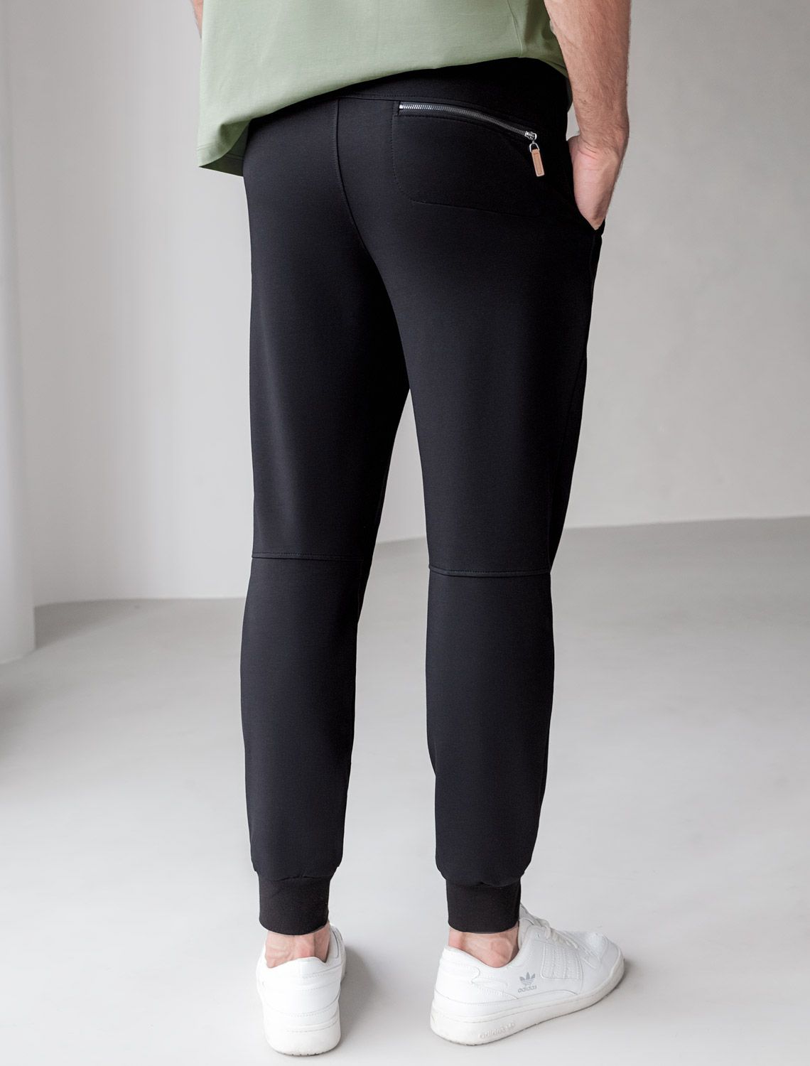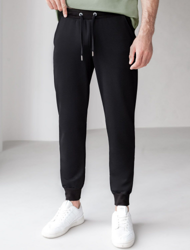 Брюки из тонкого футера с карманом на молнии U44.005 черный