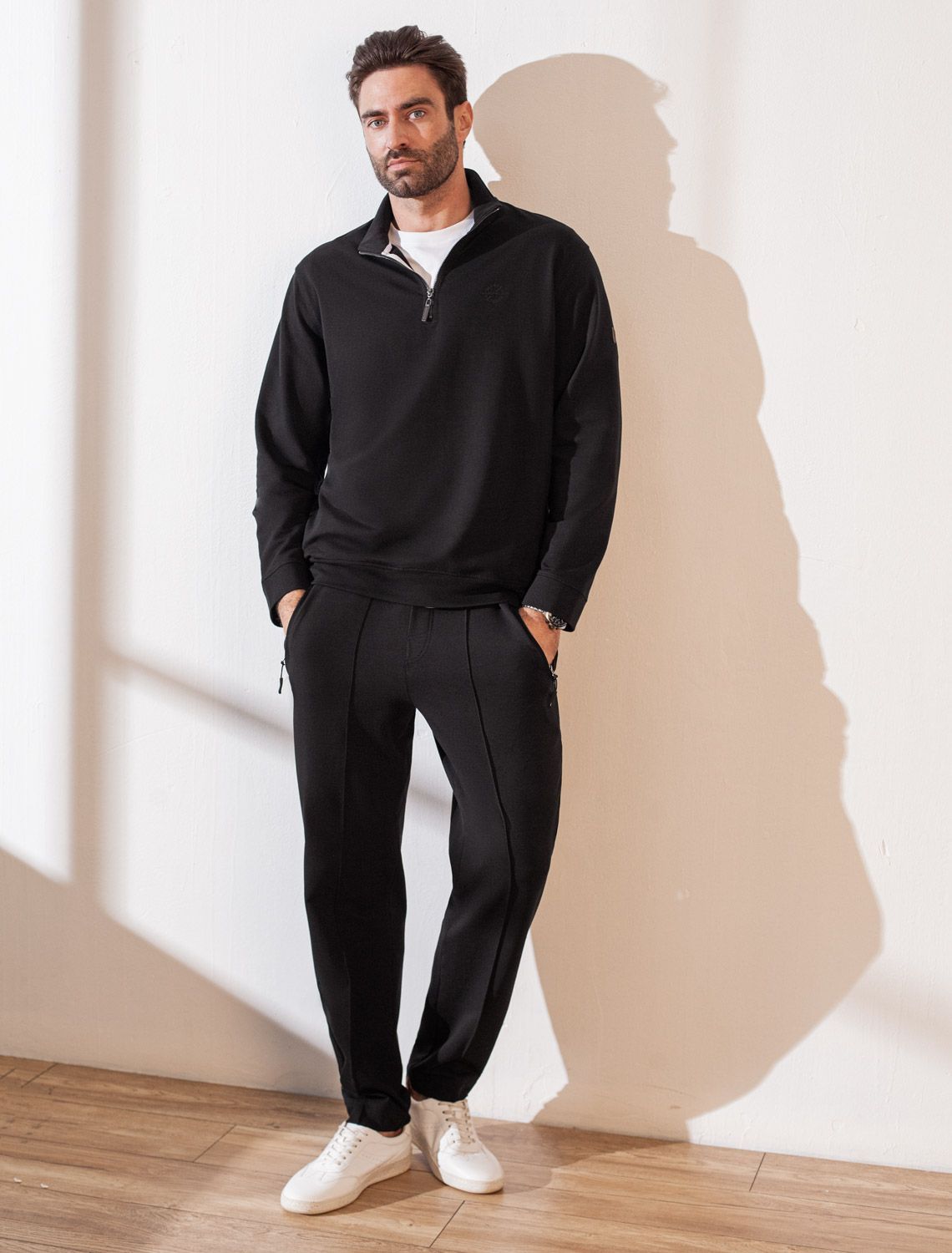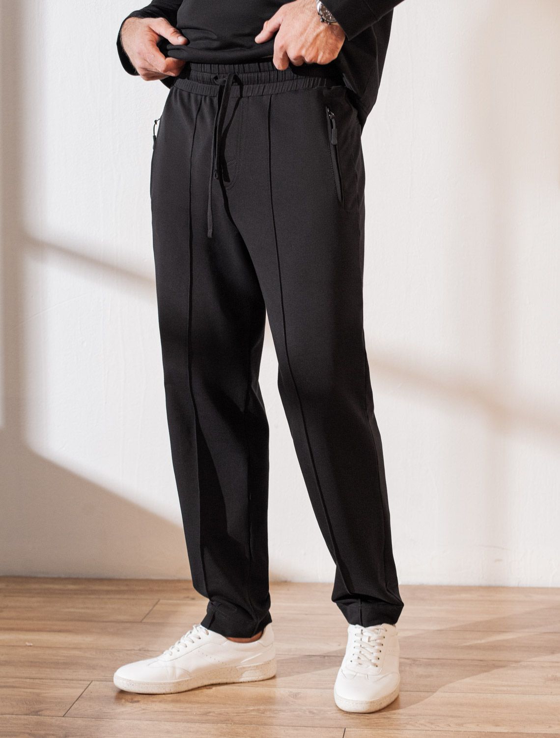 Трикотажные зауженные брюки отлично сочетаются с разными стилями одежды: от спортивного до кэжуал, с футболками и свитшотами. Это незаменимые джоггеры в современном гардеробе мужчины. черный