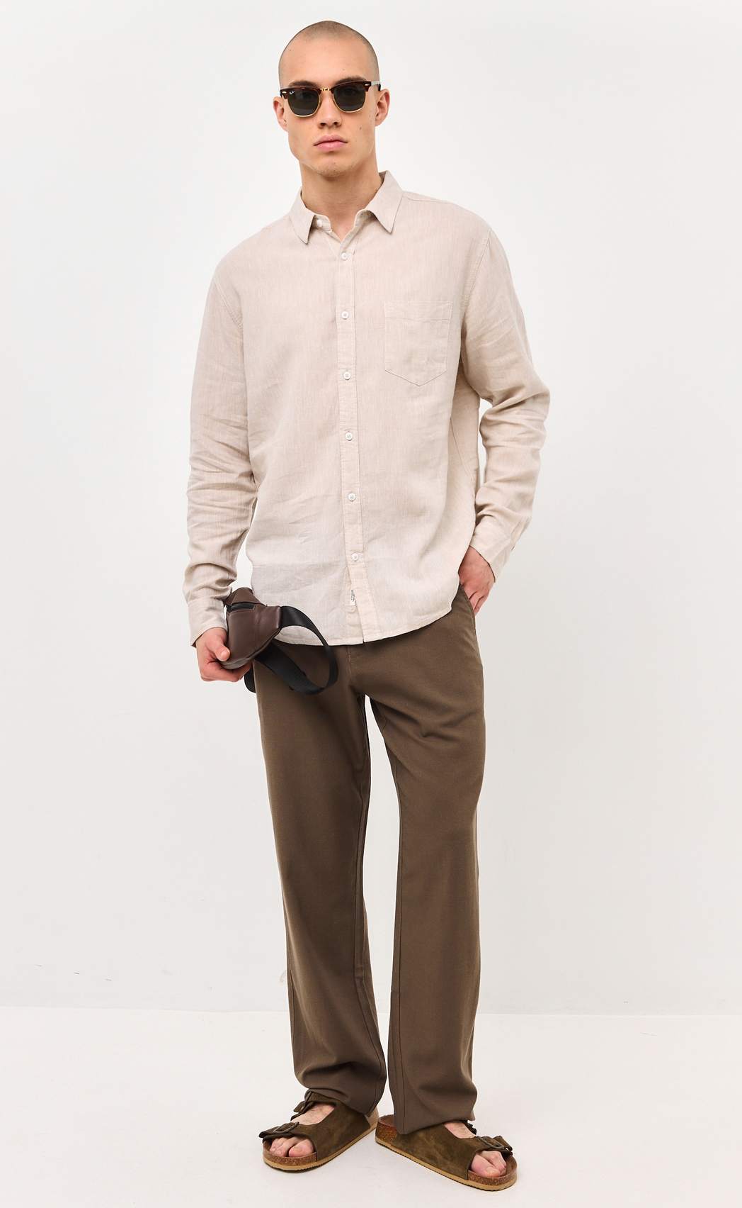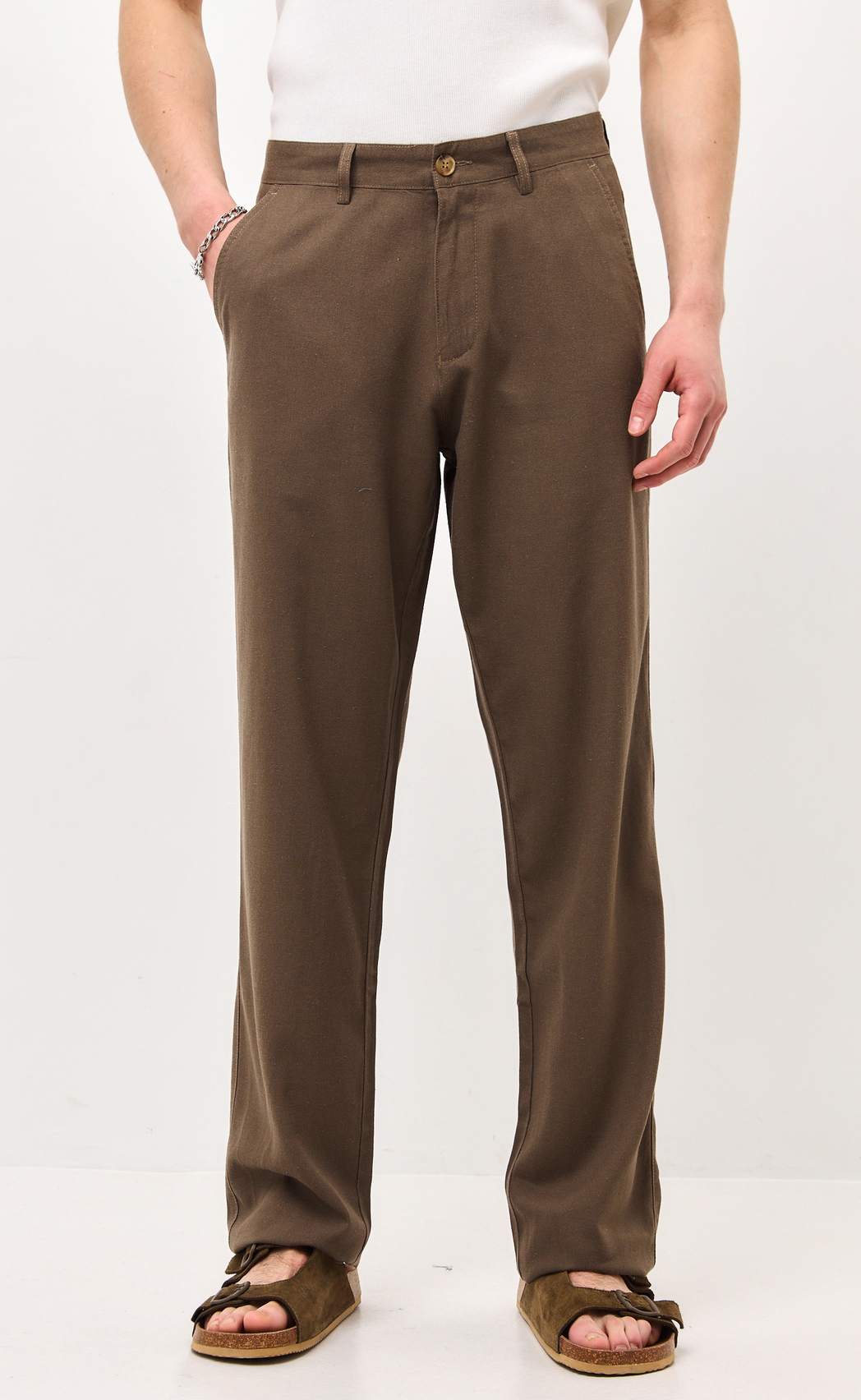 Брюки льняные мужские светло-коричневого цвета от бренда Fine Joyce – это универсальная и стильная модель для активной жизни. Брюки из льна – неотъемлемая часть летнего мужского гардероба, без которой едва ли можно сегодня обойтись. Все наши льняные брюки шьются из 100% натурального льна высшего качества и проходят дополнительную энзимную обработку, в результате чего они не подвержены усадке при последующих стирках и не линяют. Окрашены брюки мужские натуральными, не агрессивными красителями, которые экологичны и безопасны. Брюки мужские классические свободного кроя, пояс на пуговице со шлёвками под ремень. Имеются боковые карманы с отрезным бочком и задние прорезные карманы. Длина внутреннего шва для всех размеров 86 см. Летние брюки из льна обладают всеми достоинствами натуральных материалов, позволяют телу дышать в теплую погоду, приятно ощущаются на теле и делают их невероятно удобными. Льняные брюки оптом отлично подойдут на жаркую погоду как для офиса, так и для отдыха, а в сочетании с льняной рубашкой Fine Joyce или джинсовой рубашкой Primm можно создать расслабленный повседневный образ для лета. Льняные брюки – базовый элемент одежды для активных и стильных парней и мужчин. Они удобны и практичны при вождении авто, а также, если Вы активны и много двигаетесь. Брюки идеальны для спортивных прогулок, активного отдыха на свежем воздухе, для выезда на природу. С помощью этой модной вещи можно собрать любой образ: от спортивного на пляж, в зал, на вечеринку, до классического на отдых, в офис. Мужские брюки оптом представлены как стандартными размерами – от 46 до 52, так и большими размерами – от 54 до 56. Летние брюки для мужчин от бренда Fine Joyce приятно удивят своим качеством и подарят ощущение максимального комфорта. Вы можете купить брюки оптом на нашем сайте по выгодным ценам. Для удобства в карточке товара расположено фото с мерками. Fine Joyce — динамично развивающийся российский бренд. Fine Joyce — высокое качество по оптимальной цене!