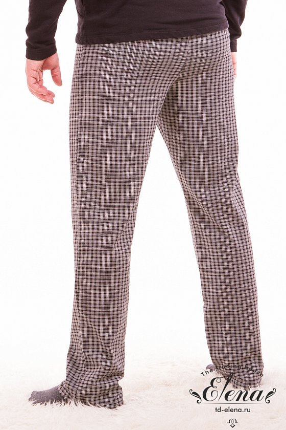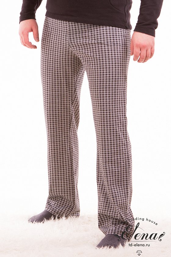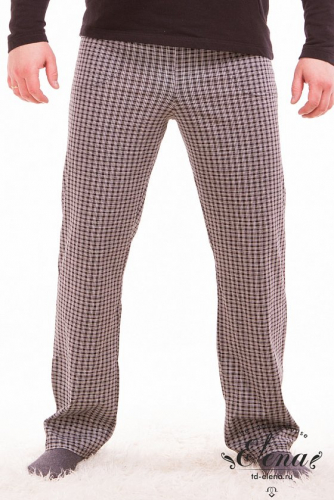 Брюки домашние из хлопка с лайкрой, с карманами по бокам и поясом на резинке.
