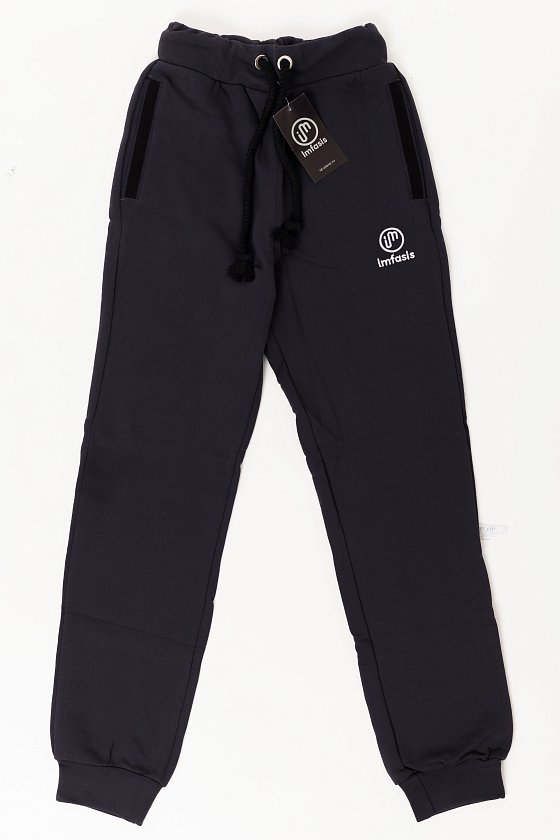 Брюки мужские с вышивкой, по бокам расположены карманы, сзади один карман на молнии. Пояс брюк на резине и шнуре, низ на манжетах. Материал футер трёхнитка (воздушка).