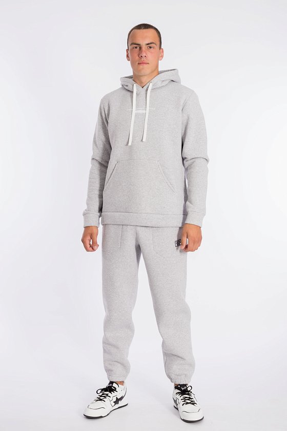 Мужские брюки выполнены из полотна с начёсом. По бокам расположены карманы. Пояс на резине и шнуре, по низу брюк резина.