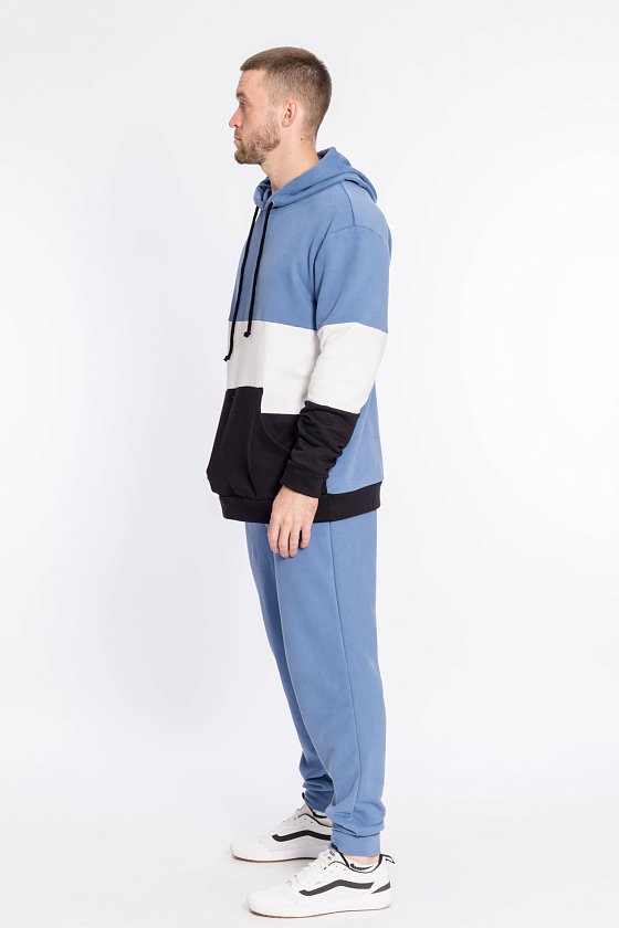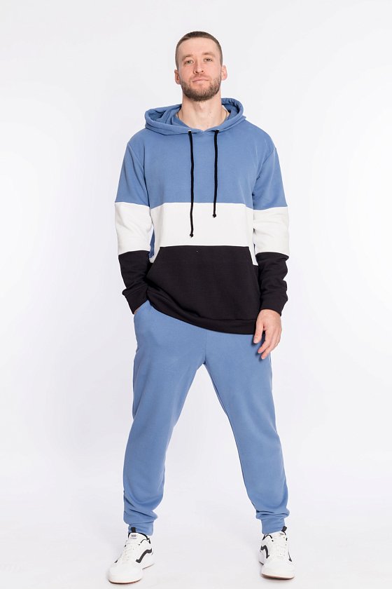 Брюки из однотонного футера трёхнитки (воздушка). С притачным поясом на резине и шнуре и манжетами снизу. По бокам расположены карманы.