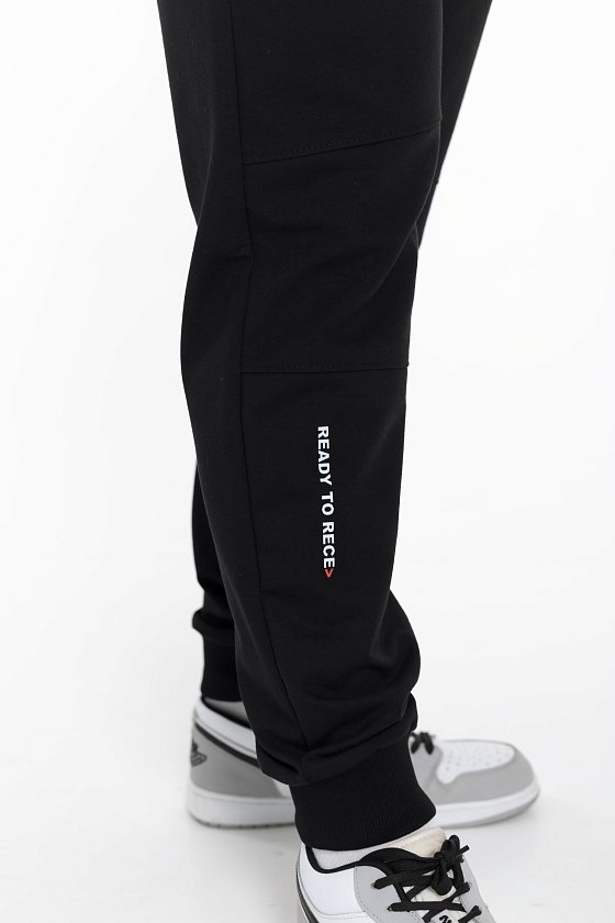 На левой штанине спереди внизу находится принт, который придает брюкам индивидуальность и стиль. Черный цвет универсален и легко сочетается с другой одеждой, позволяя вам создавать различные образы.