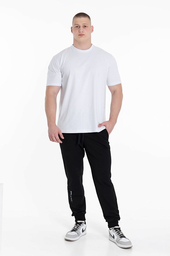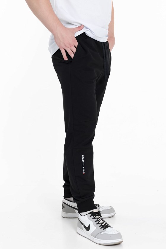 Мужские брюки из футера петли в однотонном черном цвете будут отличным выбором для комфортного и стильного образа.