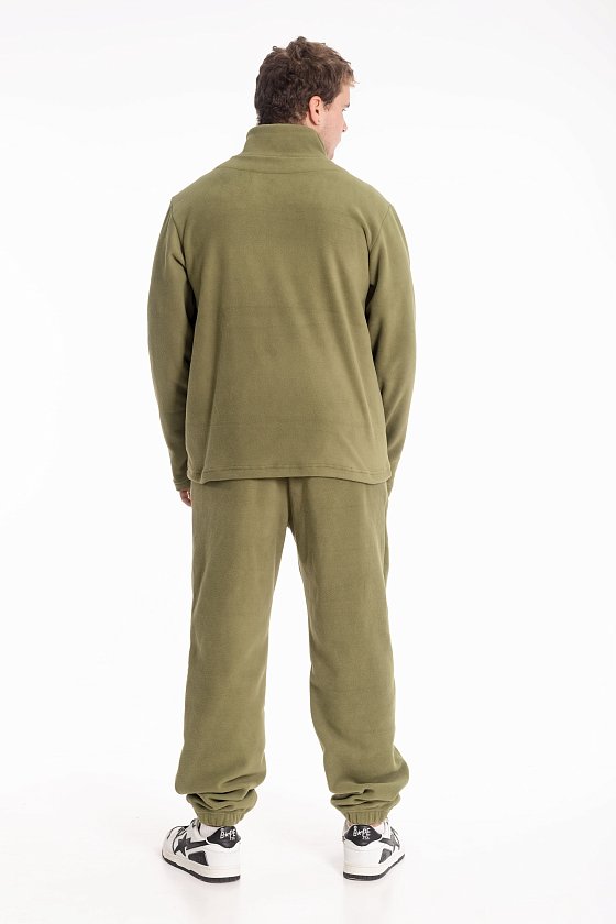 Брюки из мягкого поларофлиса — идеальный вариант для прогулок и активного отдыха в прохладную погоду. Тёплое и приятное к телу полотно обеспечивает надёжную защиту от холода и сохраняет тепло, не сковывая движений. Пояс и низ штанин на резинке гарантируют удобную посадку, а боковые карманы добавляют практичности. Однотонный цвет хаки универсален и легко комбинируется с толстовками, свитшотами или куртками. Эти брюки станут отличной основой комфортного повседневного образа в холодное время года.