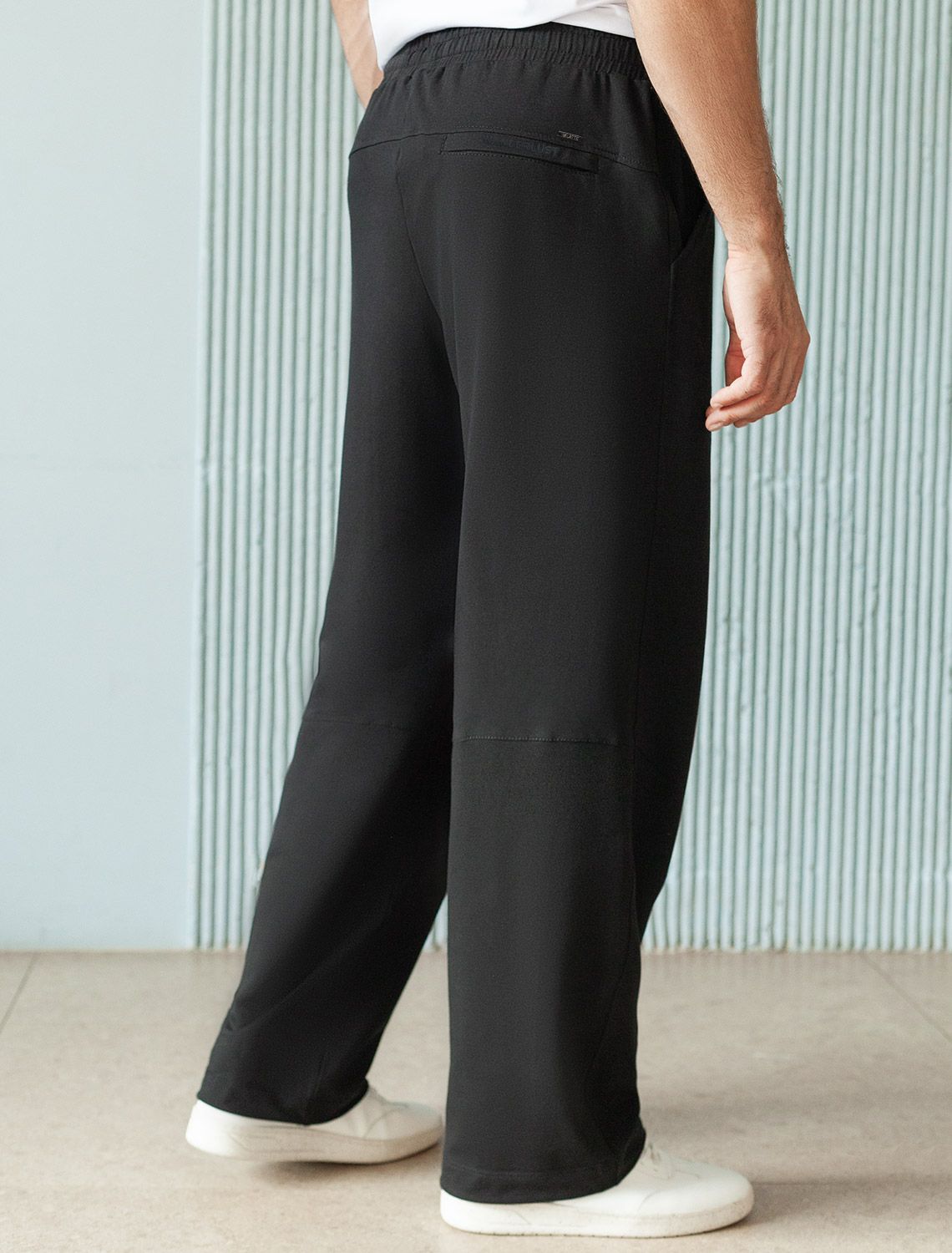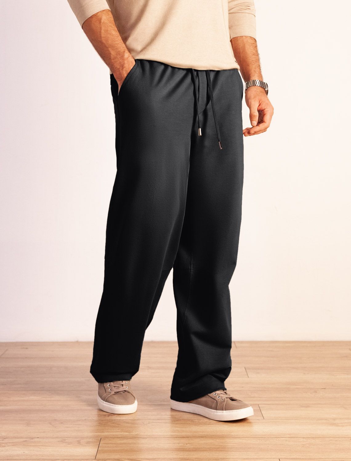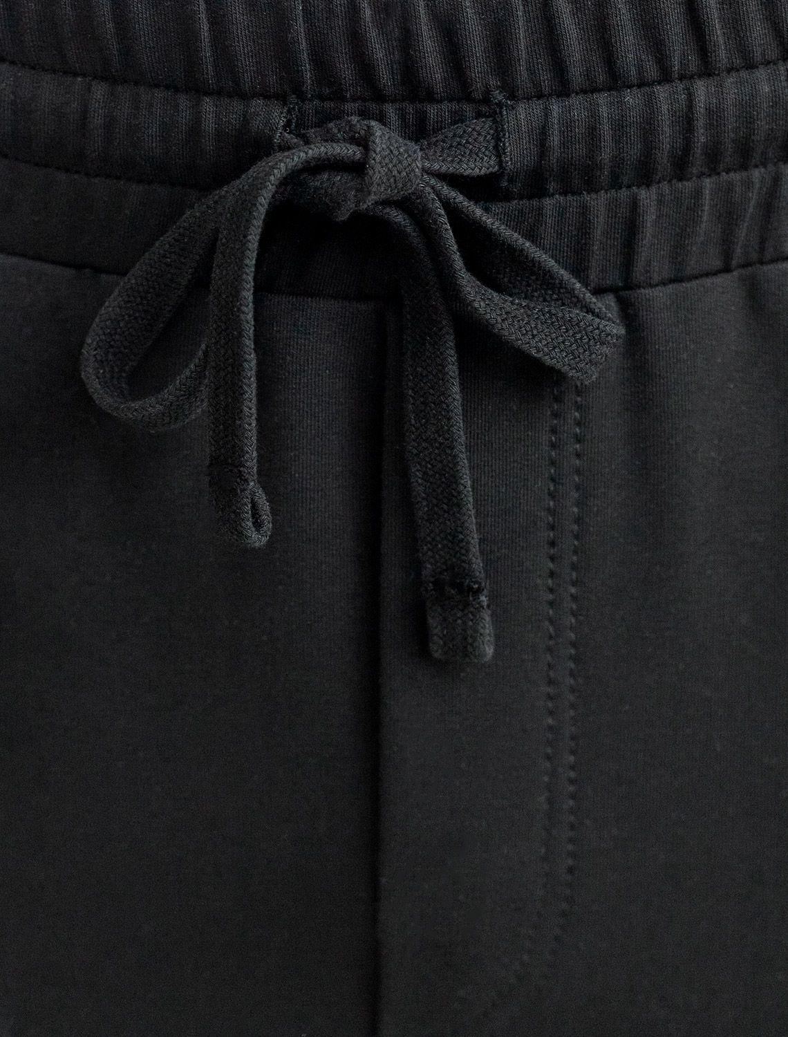 Брюки прямые на резинке из футера двухнитки с эластаном с затяжкой по низу U44.008 черный