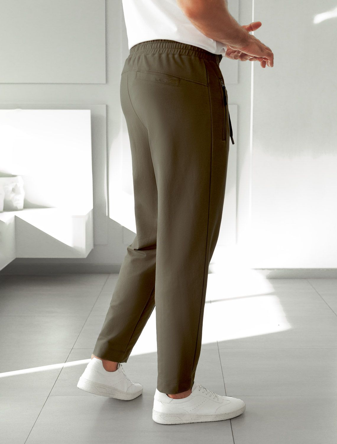 Свободные джоггеры цвета хаки созданы для максимального комфорта на каждый день. Брюки выполнены из натуральной ткани — премиального футера двухнитки, дополнены эластичным поясом со шнуром, двумя карманами на молнии по боками и задним карманом с минималистичной вышивкой в тон брюкам. Перевод надписи Wanderlust - Страсть к путешествиям . Брюки визуально вытягивают силуэт за счет декоративных застроченных стрелок. Эластичный качественный хлопок обеспечивает приятное ощущение, прилегая к телу, а также позволяет коже дышать. Ткань отличается высокой износостойкостью, не деформируется после стирки, сохраняет форму и внешний вид даже при активной носке. Повседневные спортивные штаны подходят для любого роста и комплекции благодаря представленной широкой размерной линейке. Подойдут на худых парней и мужчин в теле. Брюки правильного кроя, будут удобными для повседневной носки, не стесняя движений - идеальный выбор для отдыха дома, путешествий, для активной работы или прогулок. Трикотажные зауженные брюки отлично сочетаются с разными стилями одежды: от спортивного до кэжуал, с футболками и свитшотами. Это незаменимые джоггеры в современном гардеробе мужчины.