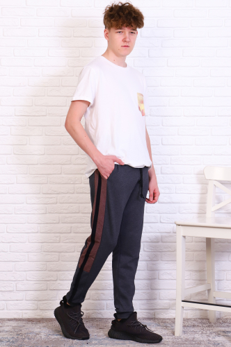 Спортивные утеплённые брюки на манжетах с эффектными широкими лампасами. Боковые карманы, пояс на резинке. Удобный и практичный вариант для активного отдыха.
