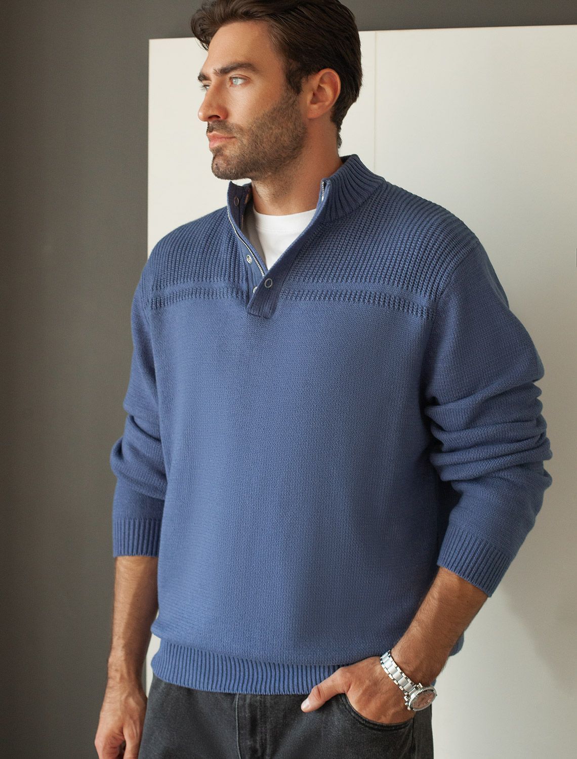 Свитер фактурной вязки с застежкой на крупные кнопки