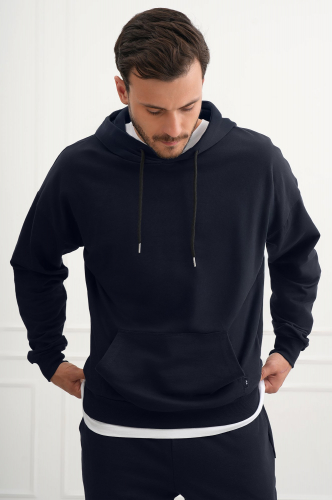 Мужской спортивный костюм из футера дв..показатьухнитки — надежный спутник спорта, активного отдыха и туризма. Универсальный синий костюм из хлопка с лайкрой сочетает комфорт, функциональность и стиль.